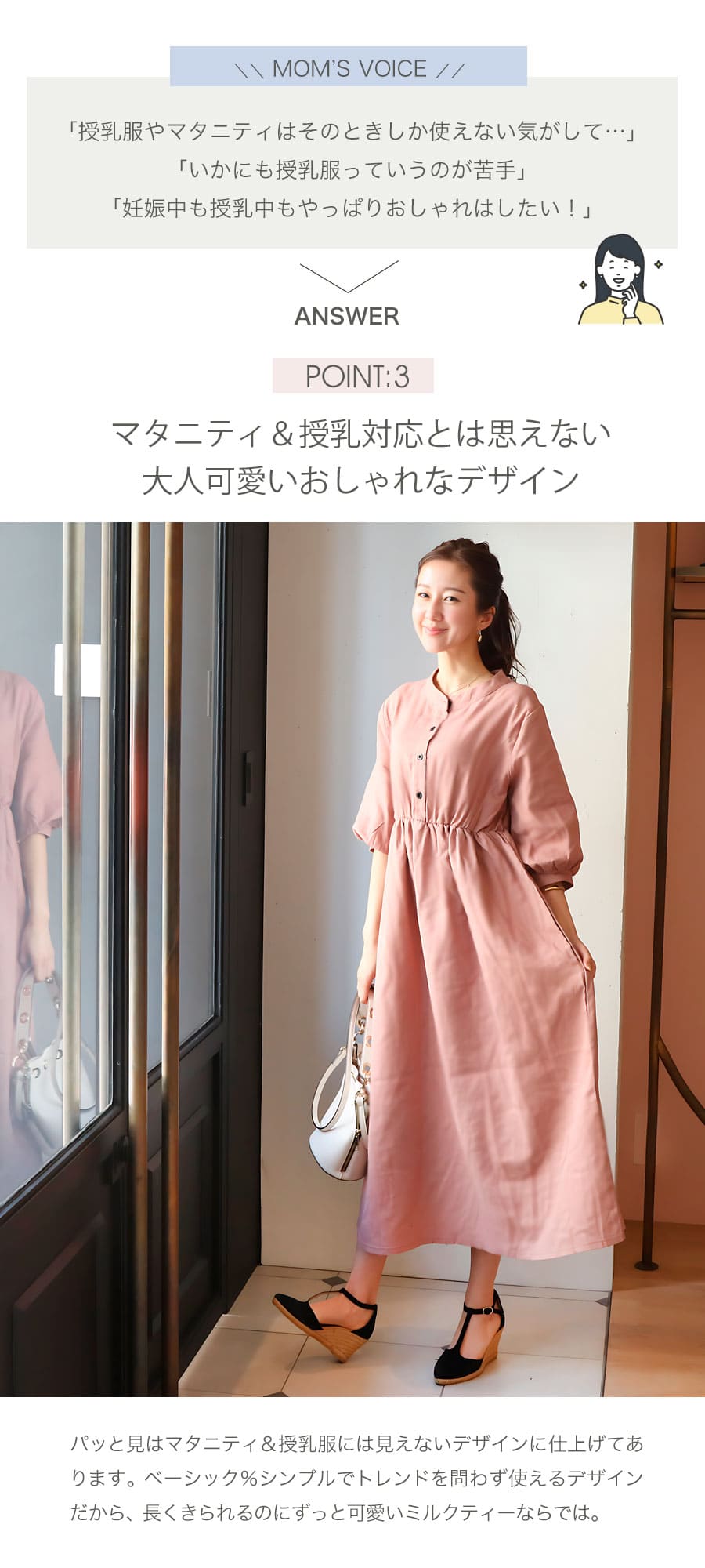 「マタニティ&授乳対応とは思えない可愛いデザイン」