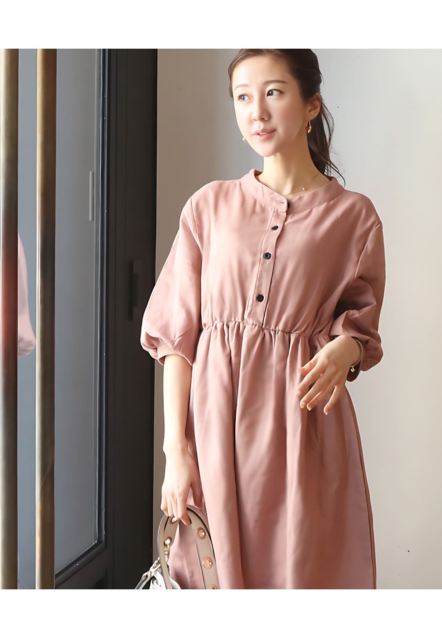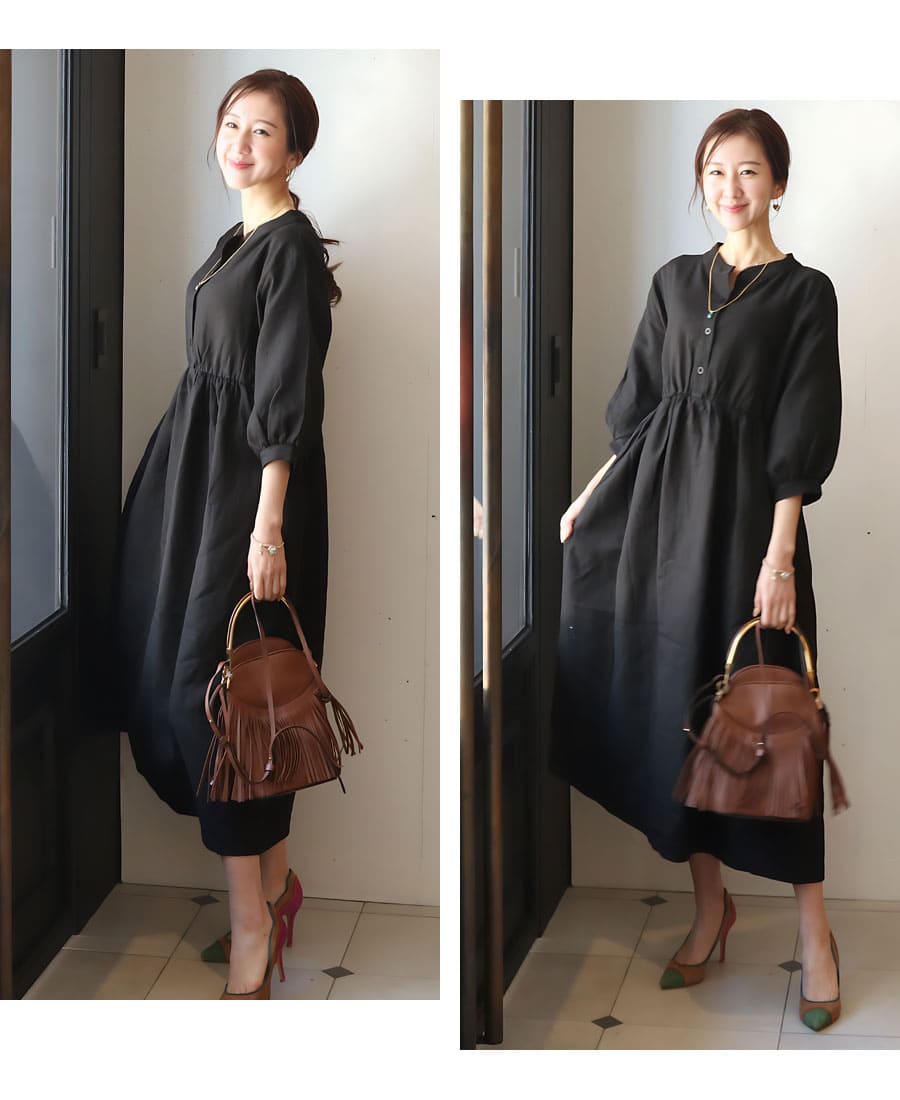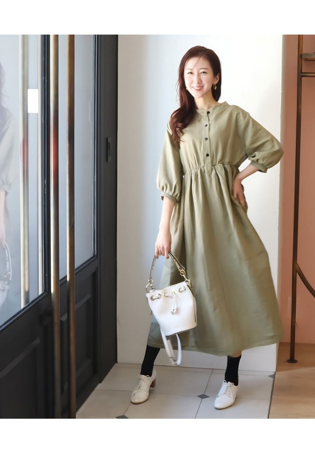 ふんわりしたパフィなシルエットの袖は二の腕をカバーしながら、七分袖で育児や家事をしやすくしてあります。
