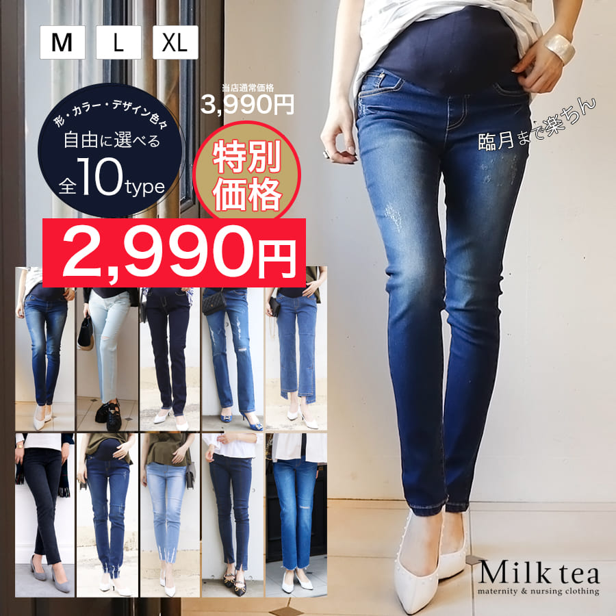 シルエットやデザイン、素材や機能性にこだわった、ミルクティーオリジナルのマタニティーデニム。