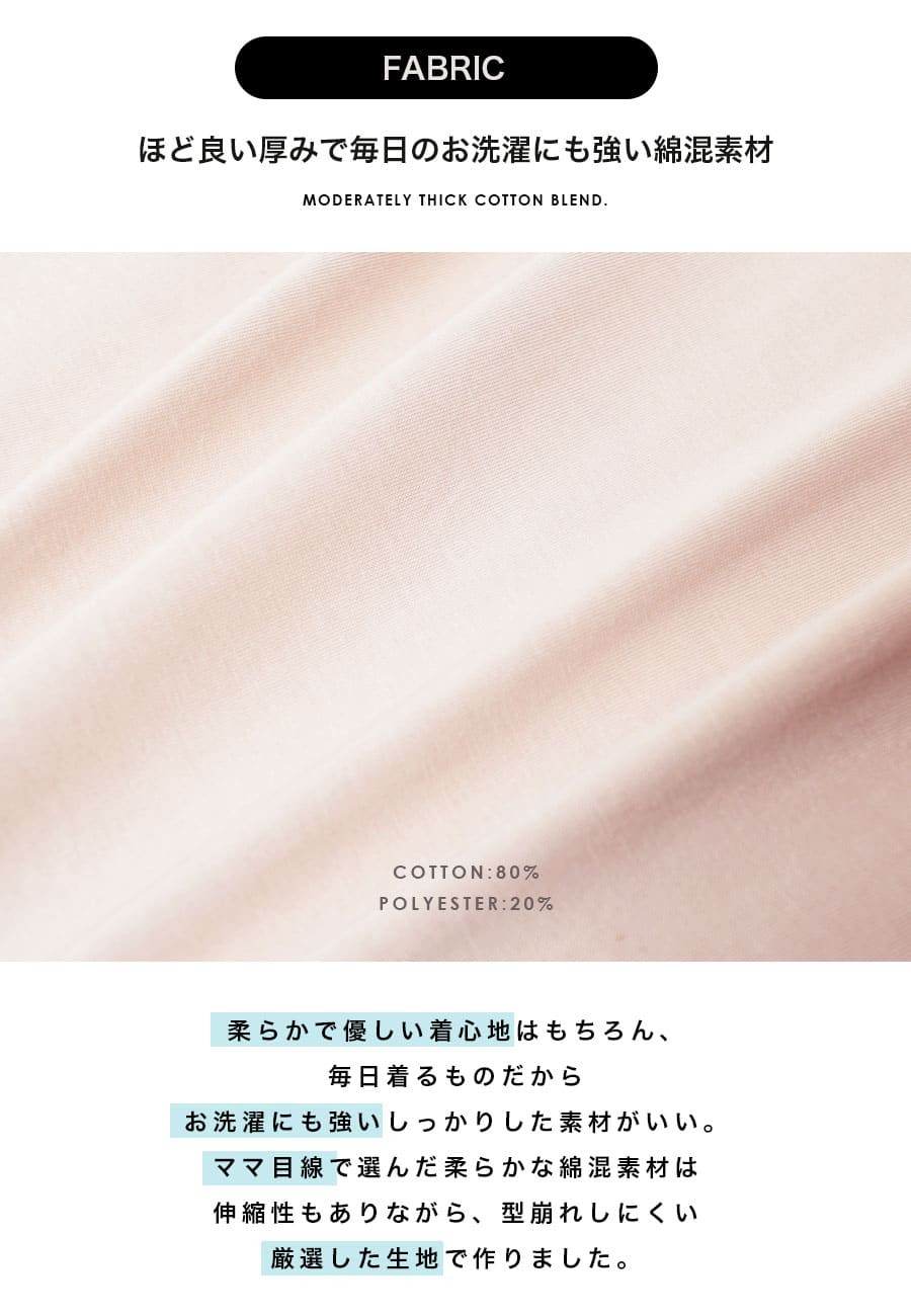●綿混素材:敏感なママの肌にも赤ちゃんにもやさしい、柔らかな着心地。
