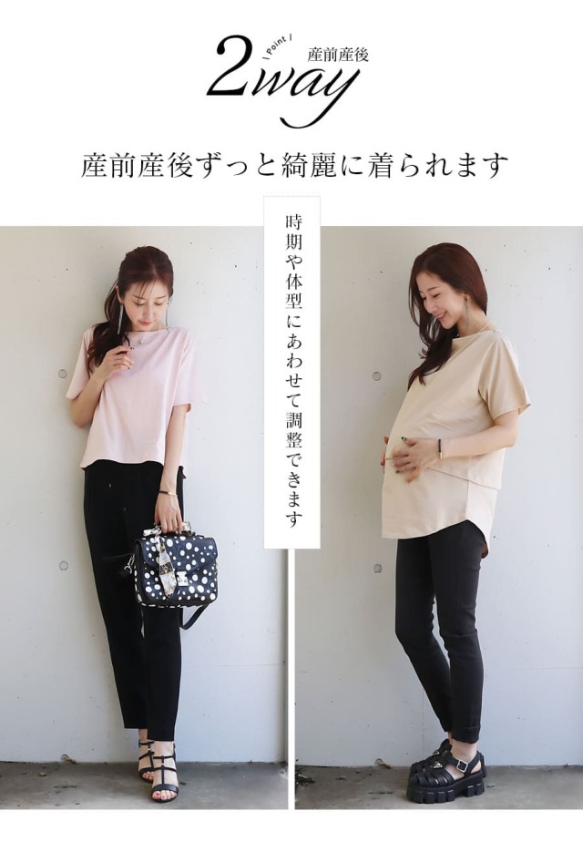 ●ゆったりシルエット:マタニティ期の大きなお腹にも無理なくフィットし、動きやすさも抜群。