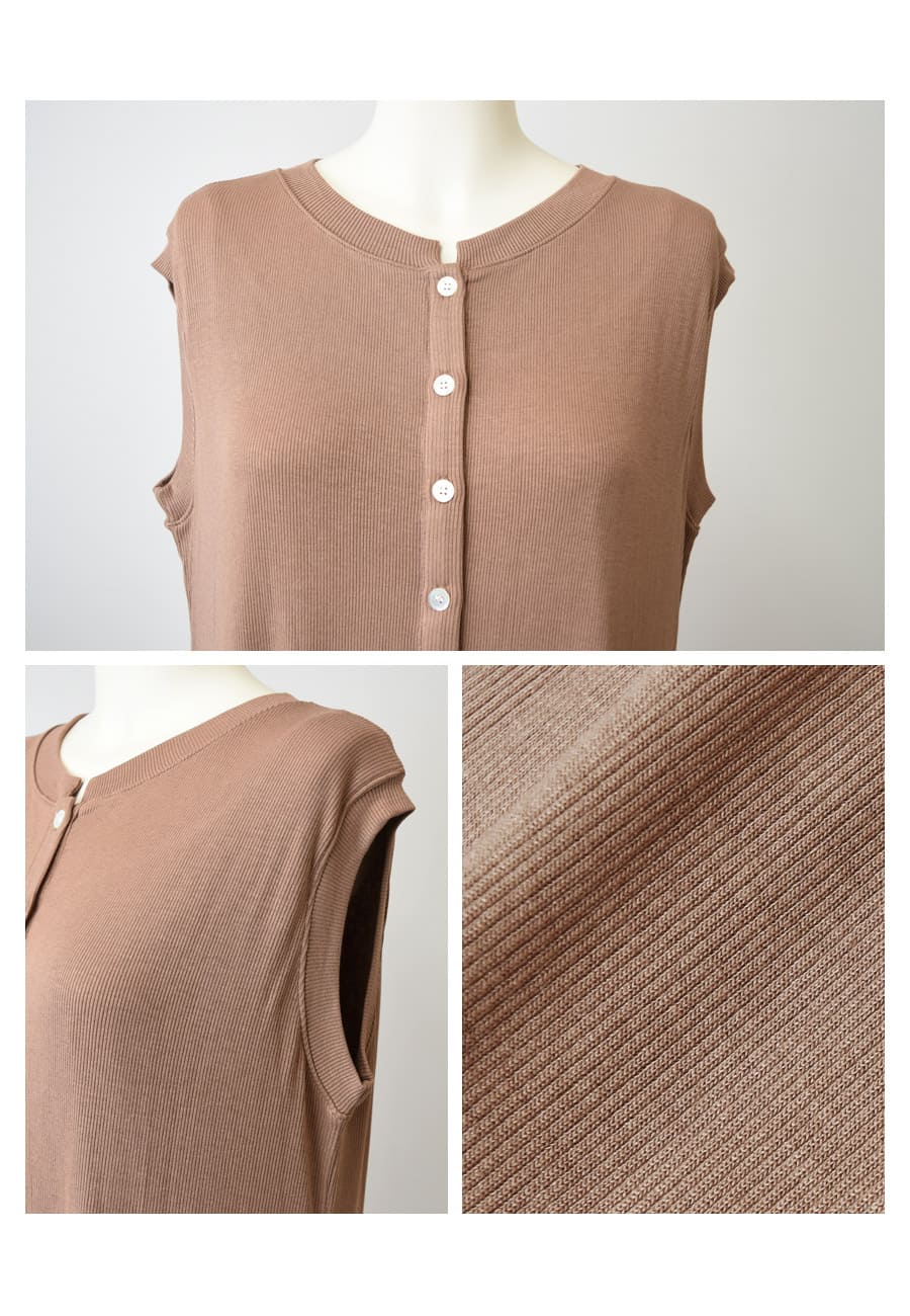 ●伸縮性のあるリブカットソー素材:動きやすく、ストレスフリーな着心地。