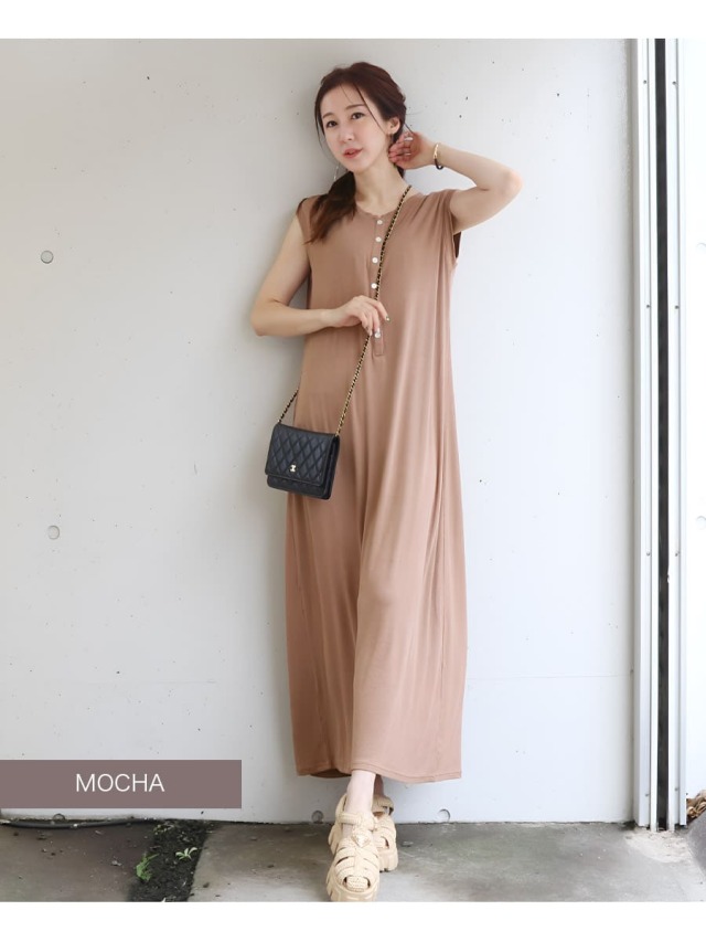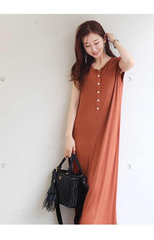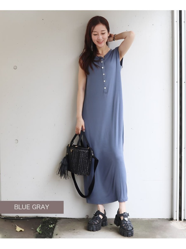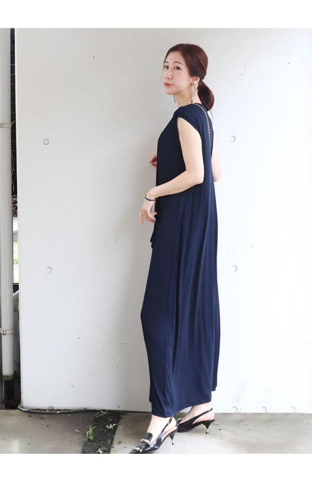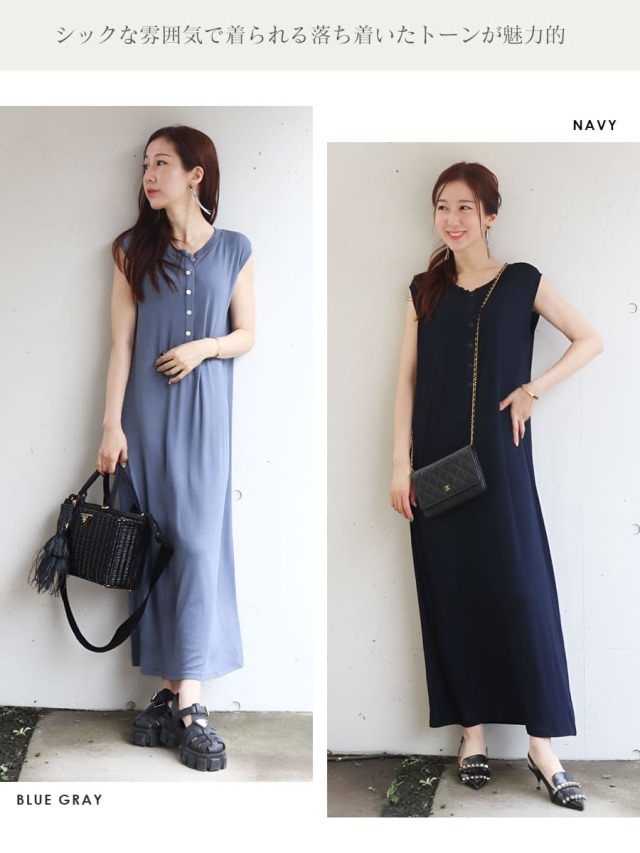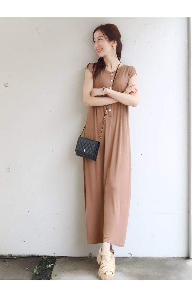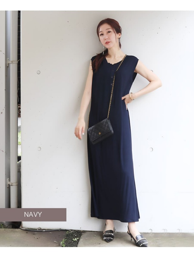 そんな気持ちに寄り添う、ストンとした直線的なIラインシルエットのロングワンピース。