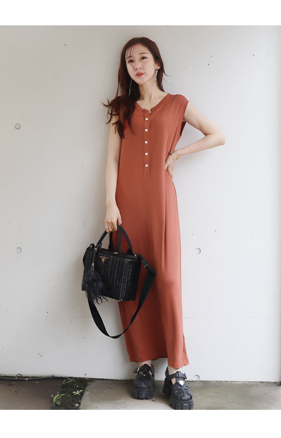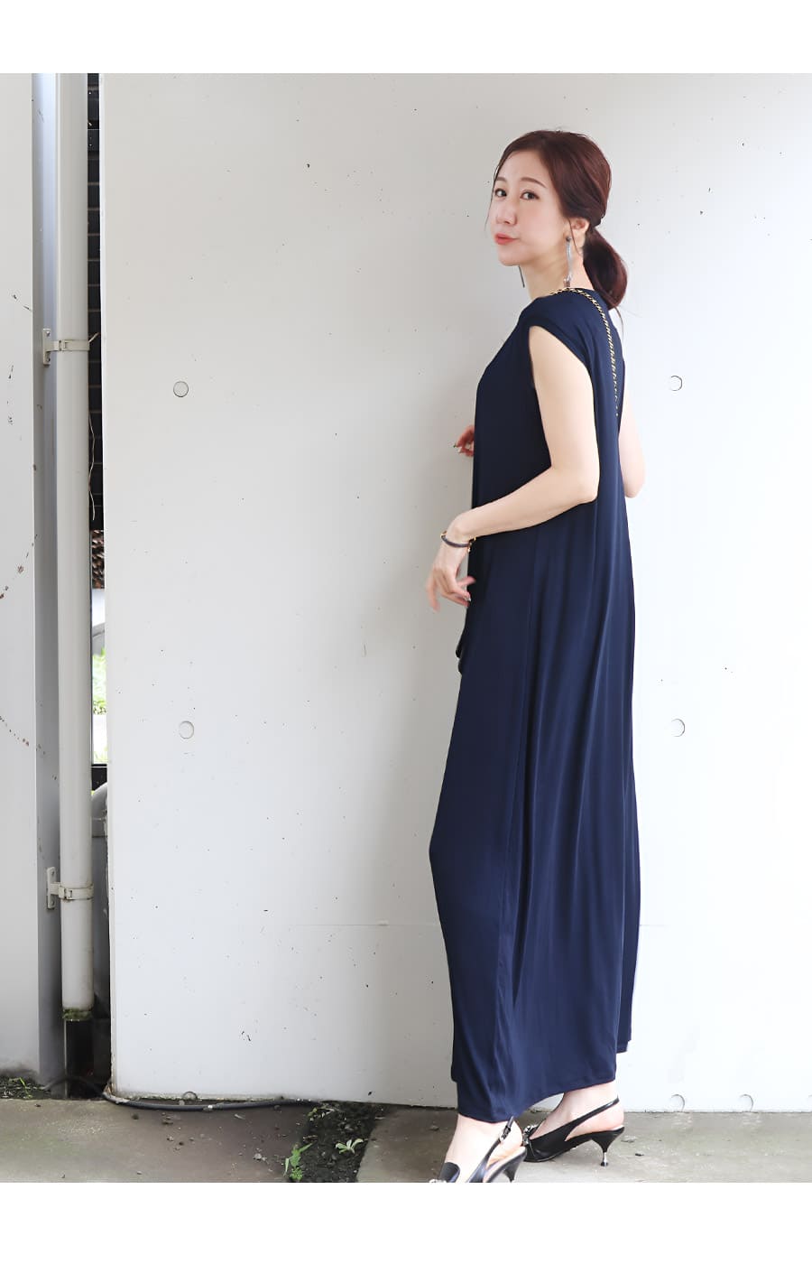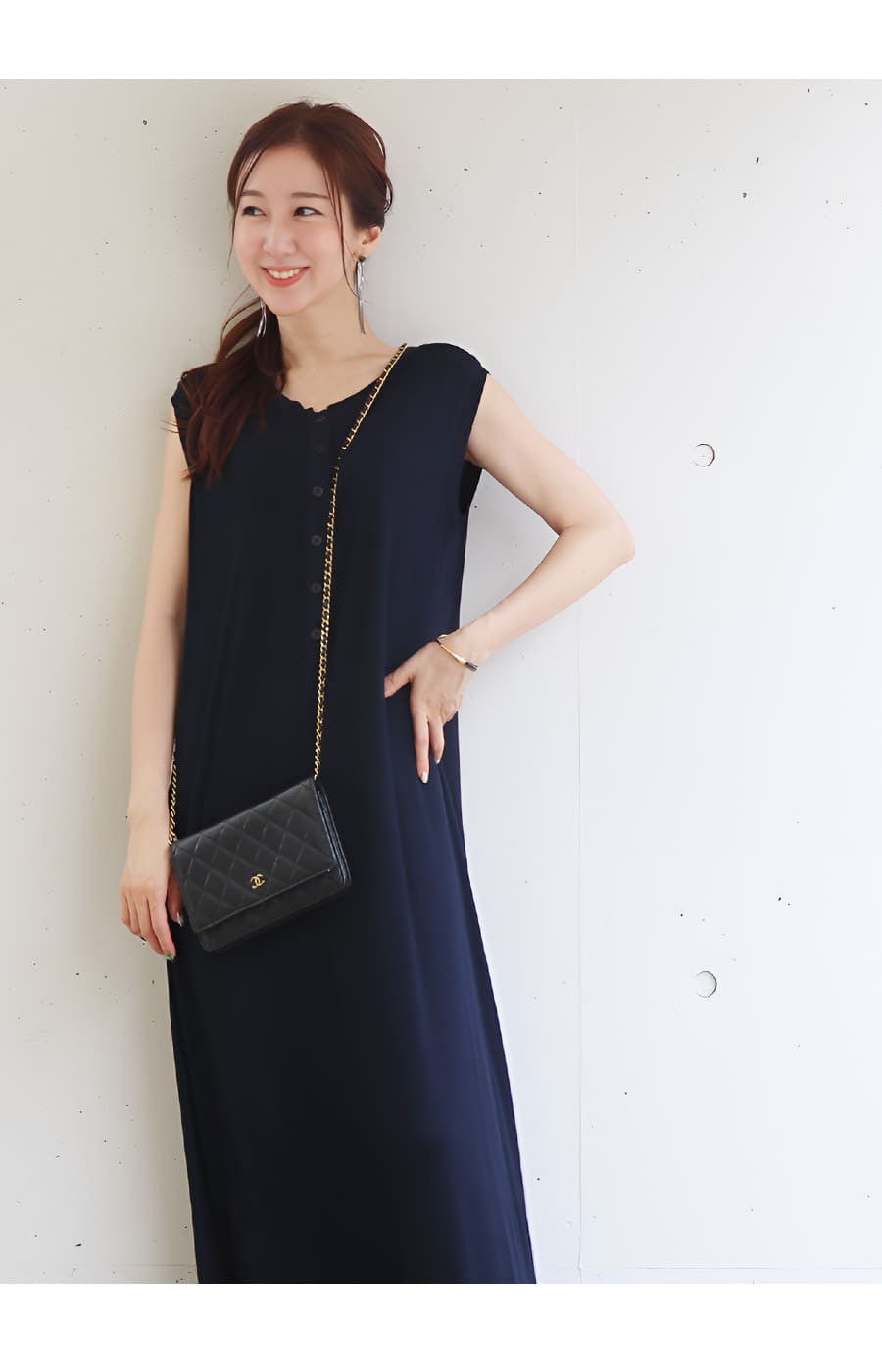 そんな気持ちに寄り添う、ストンとした直線的なIラインシルエットのロングワンピース。
