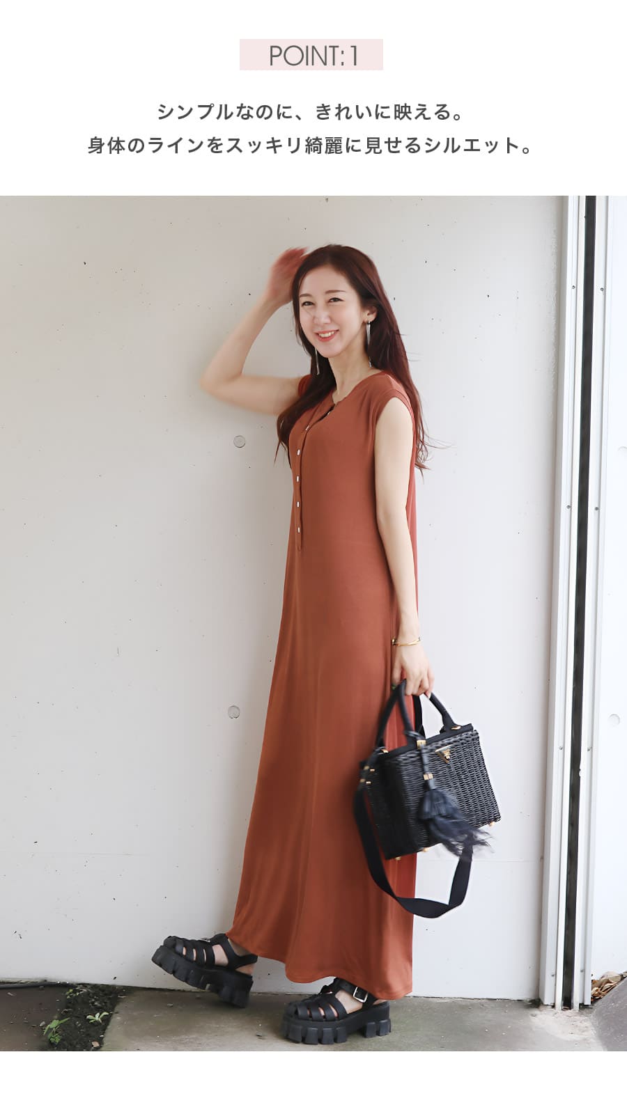 シンプルながらも美シルエットを叶える、1枚で主役になれる大人ワンピです。