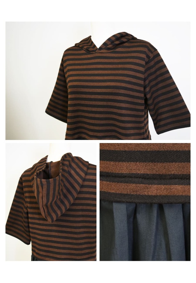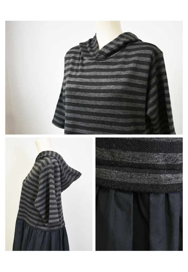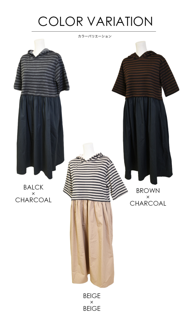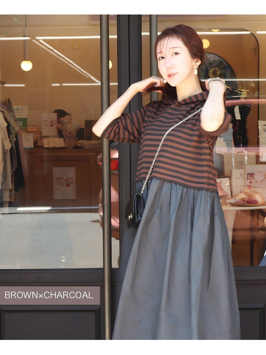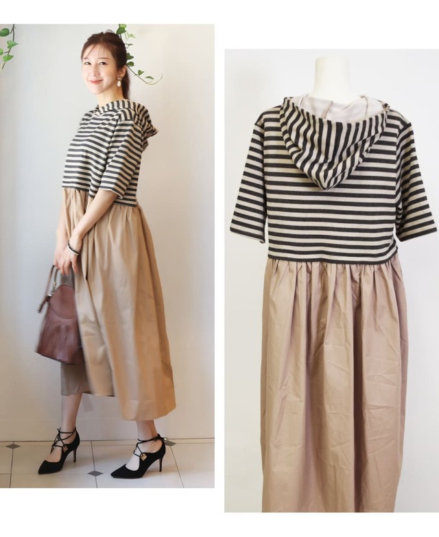 繊細なボーダーと軽やかなフレアスカートで「きちんと感」と「やわらかさ」を両立したレイヤード感たっぷりのドッキングワンピースです。