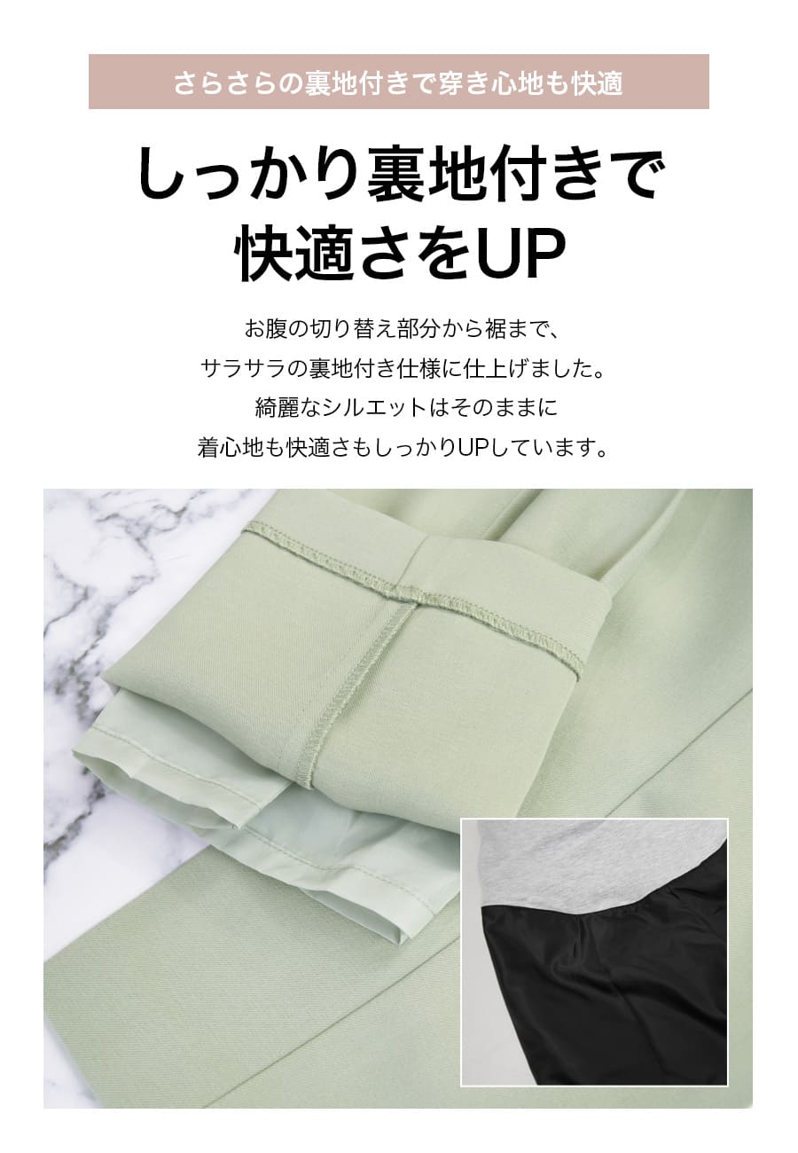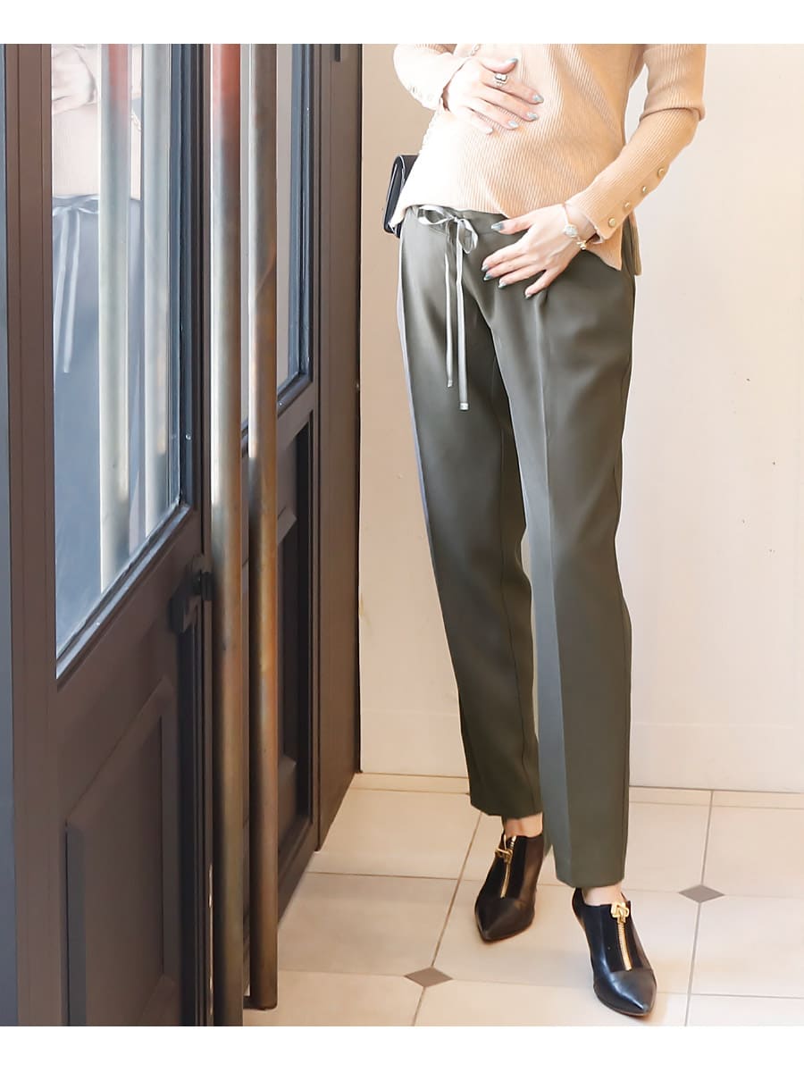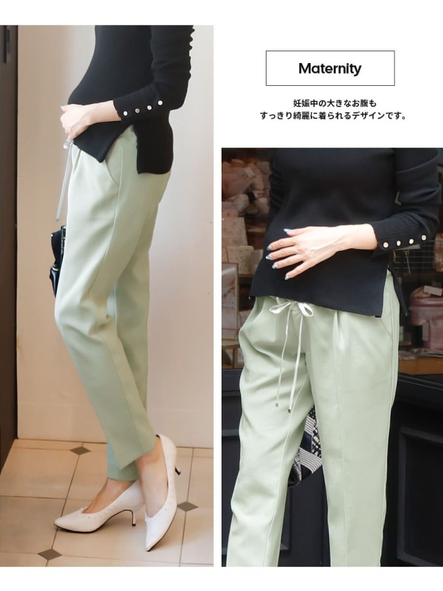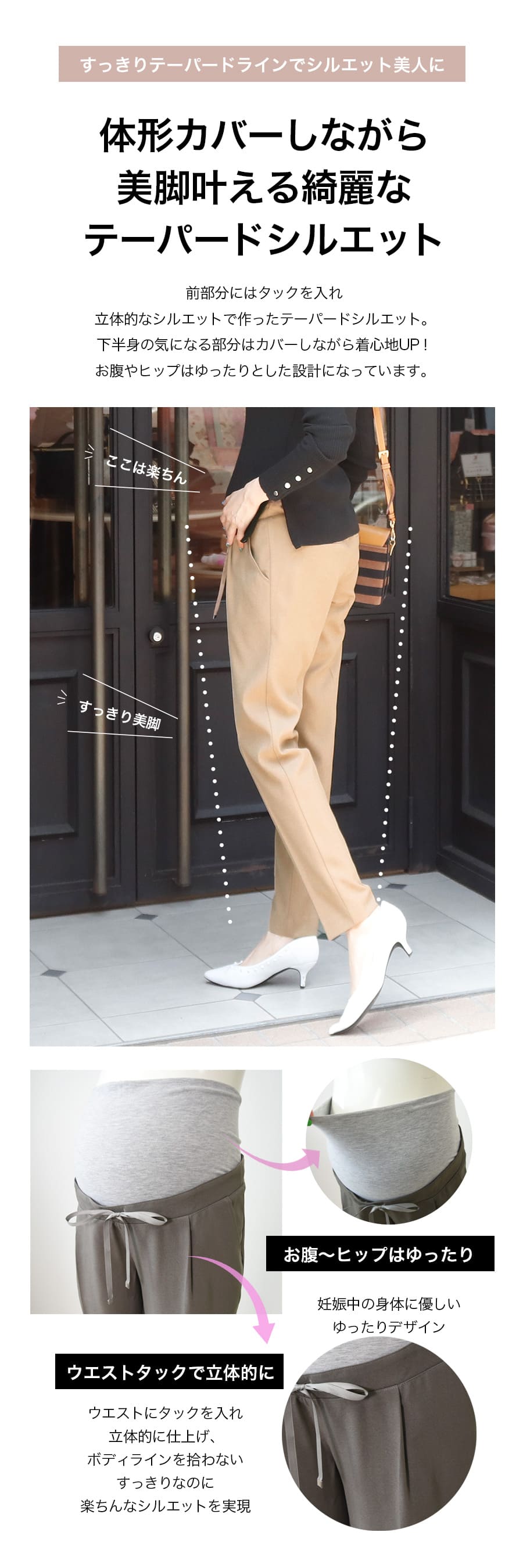 「オンもオフもスマートに。裏地付きで快適、美脚マタニティテーパードパンツ」