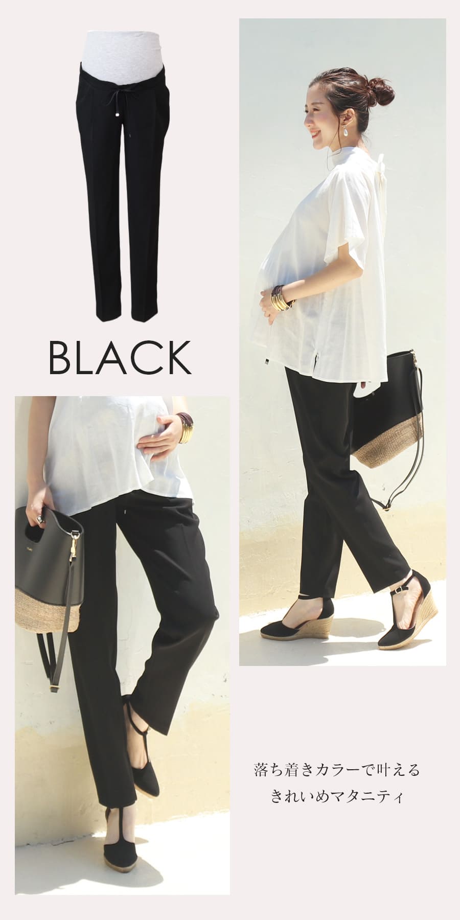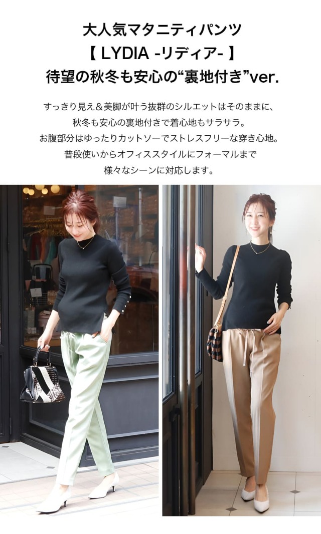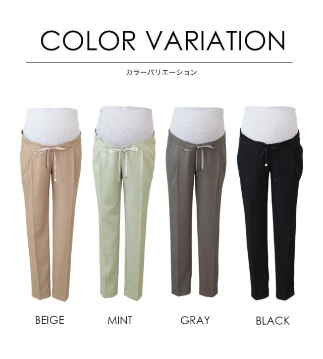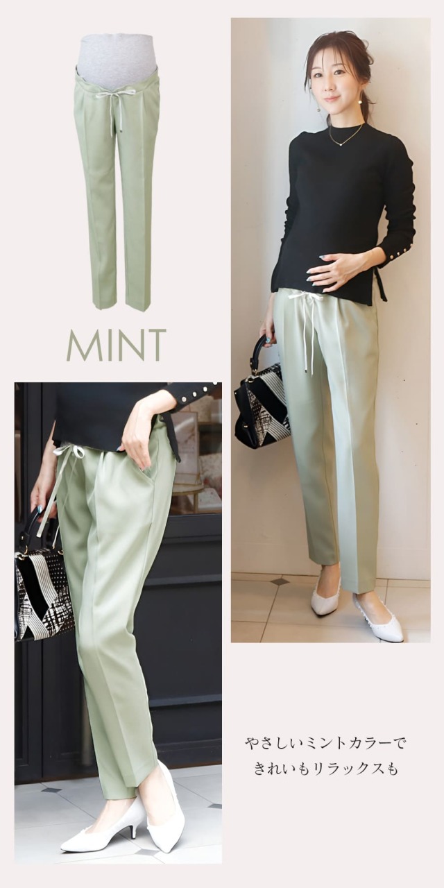 「オンもオフもスマートに。裏地付きで快適、美脚マタニティテーパードパンツ」