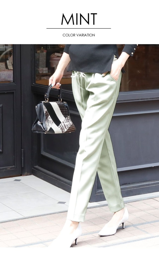 ●計算されたシルエットと脚のラインを拾わない素材で、美脚効果抜群。
