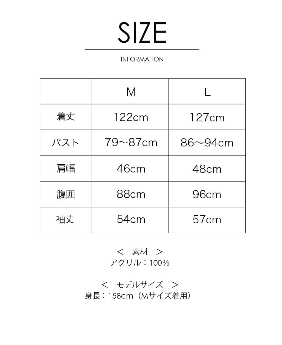 着丈:122cm バスト:79〜87cm 肩幅:46cm 腹囲:88cm 袖丈:54cm