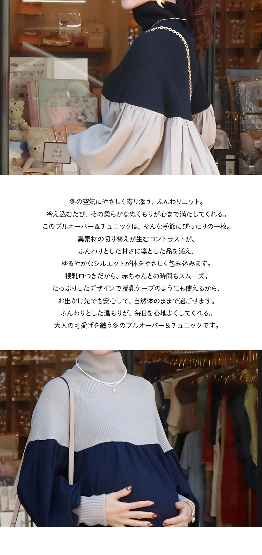 商品カテゴリ:授乳服 授乳 マタニティ マタニティ 妊娠 出産 妊婦 妊婦服 産前産後 出産準備 入院準備 産院 レディース ニット 切り替えデザイン ニットプルオーバー チュニック 暖か 防寒 授乳ケープ 冬 春 秋 大人可愛い Milktea ミルクティー ミルクティ マタニティ服と授乳服の通販なら【公式】Milk teaオンラインショップ