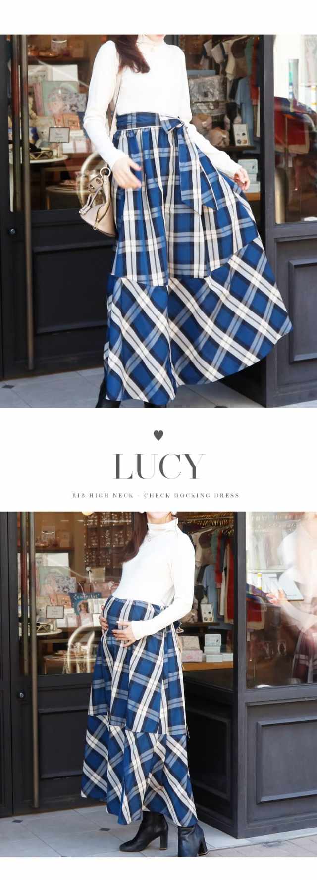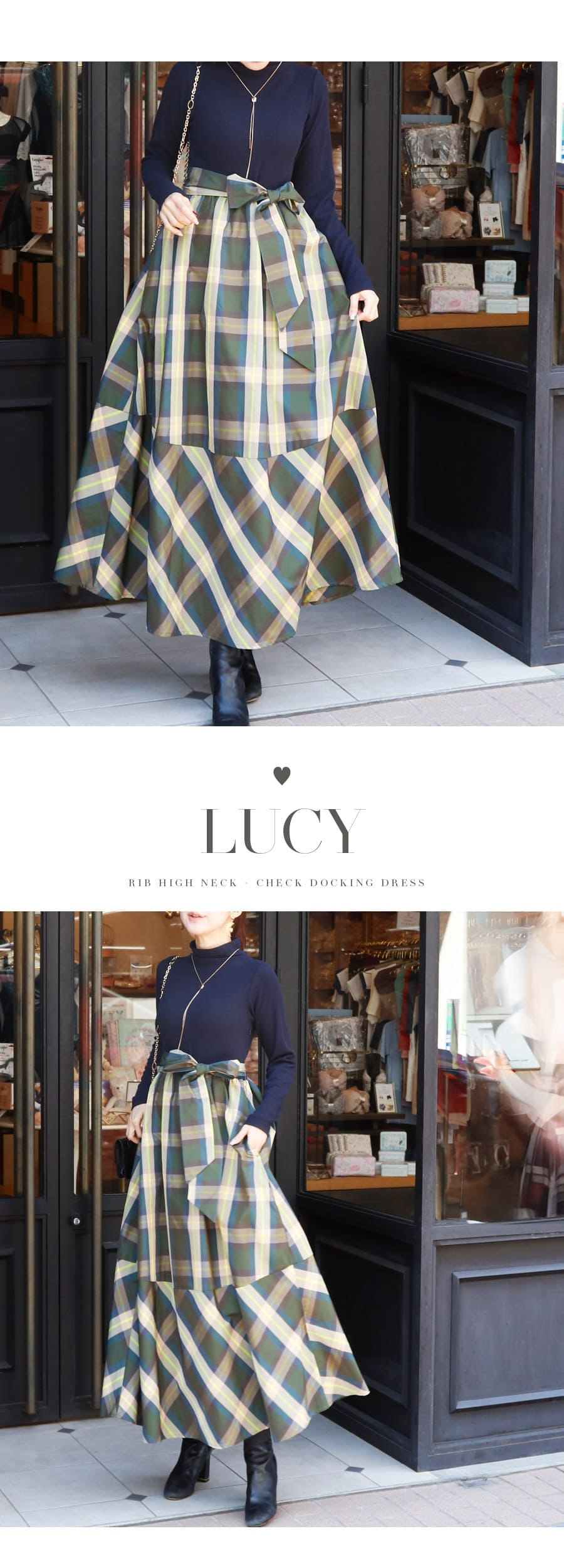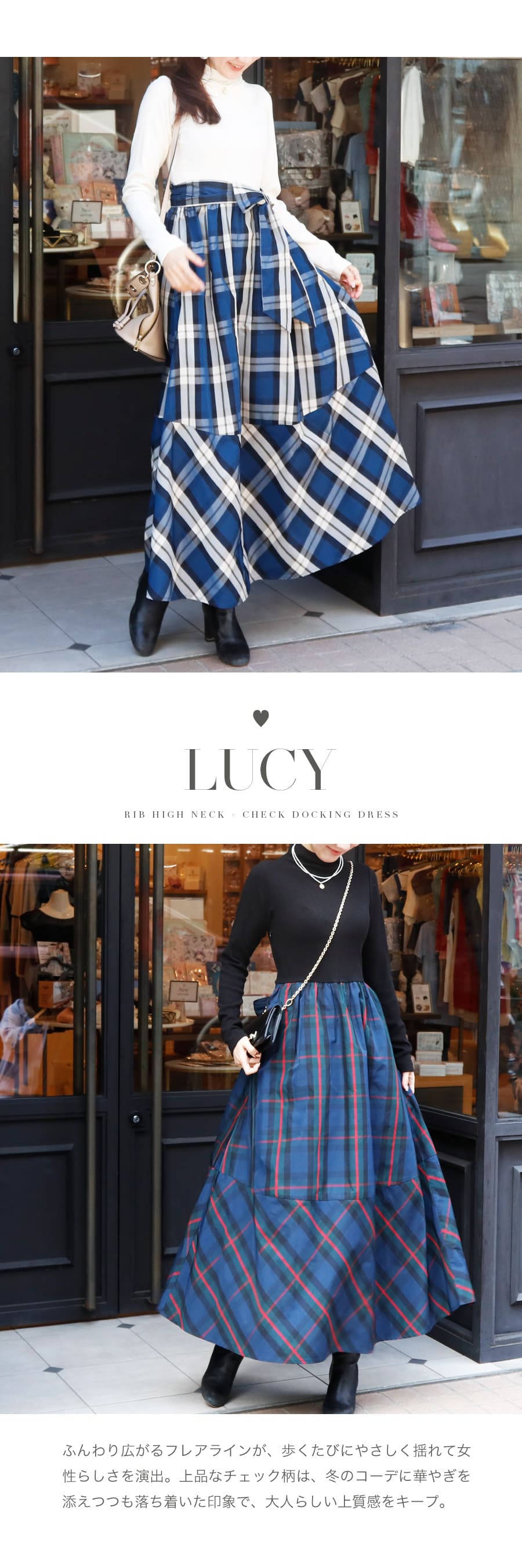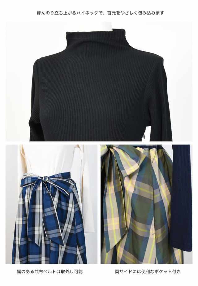 \大人の冬を華やかに仕立てる、リブ×チェックの洗練ドッキングワンピース/