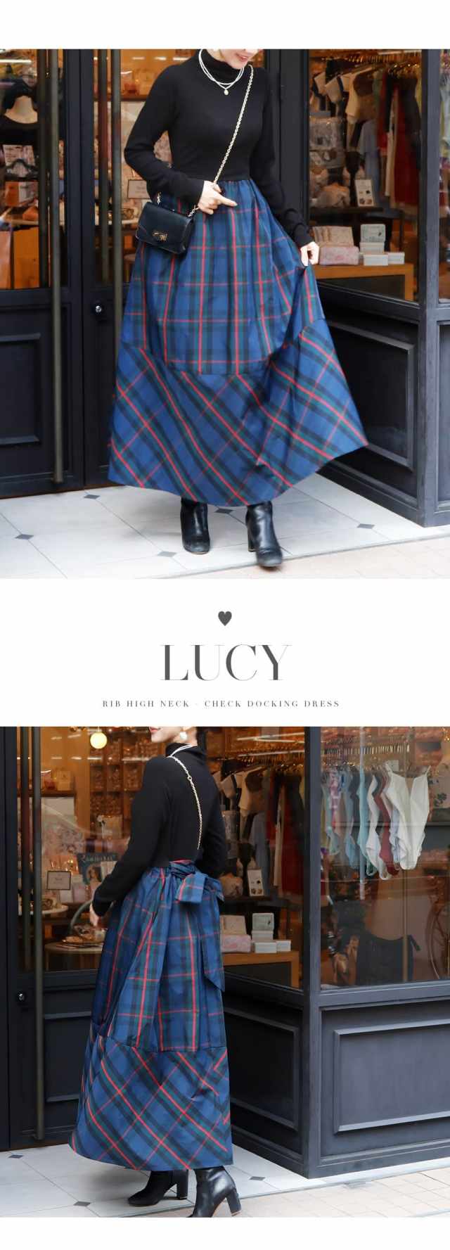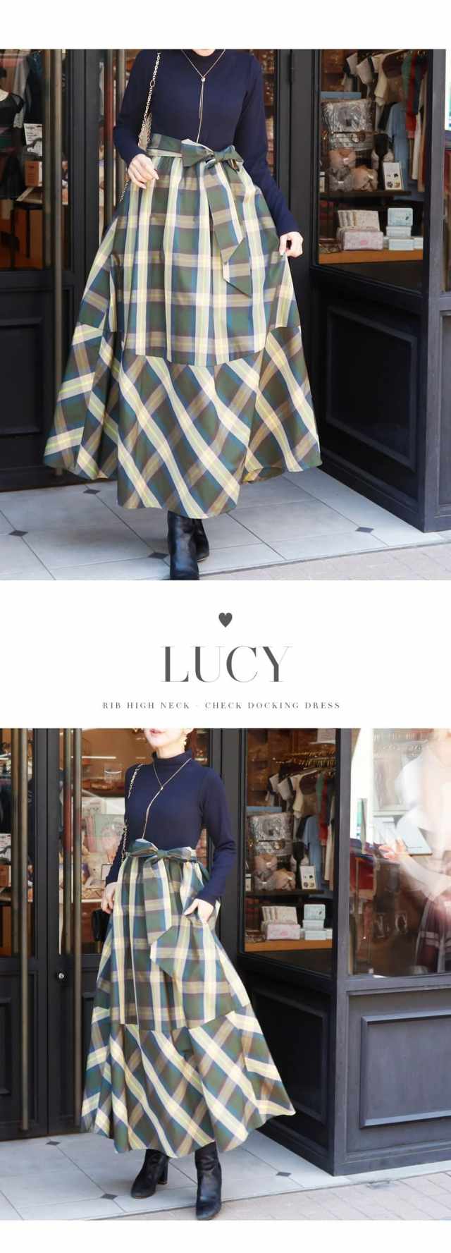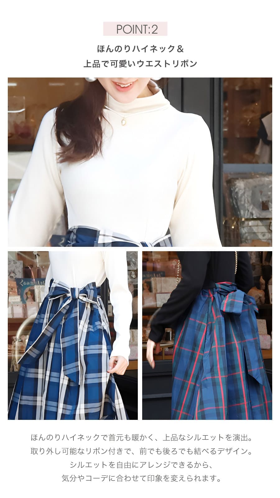 ほどよく身体にフィットするリブトップスと、冬の気分を高める上品チェックを合わせた、季節感たっぷりの主役ワンピース。