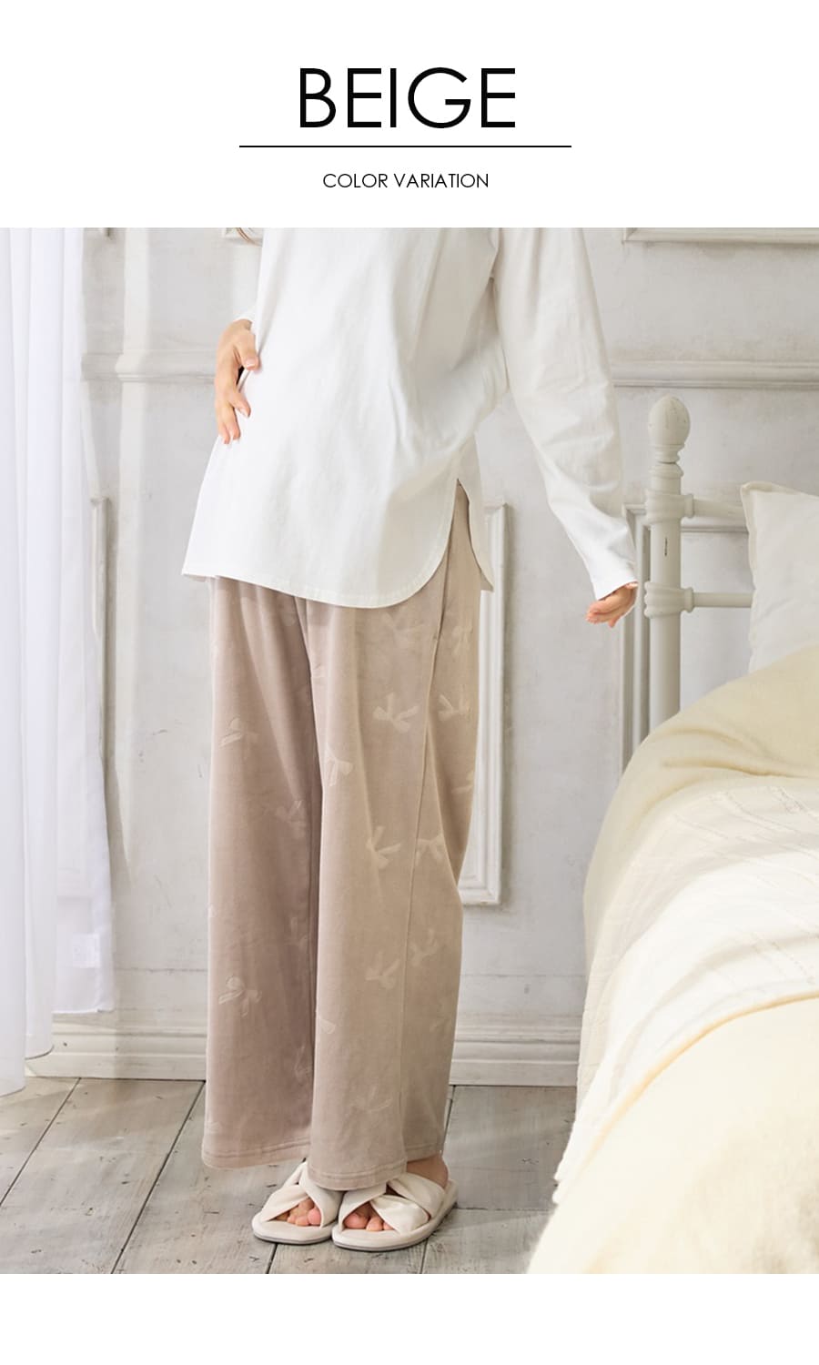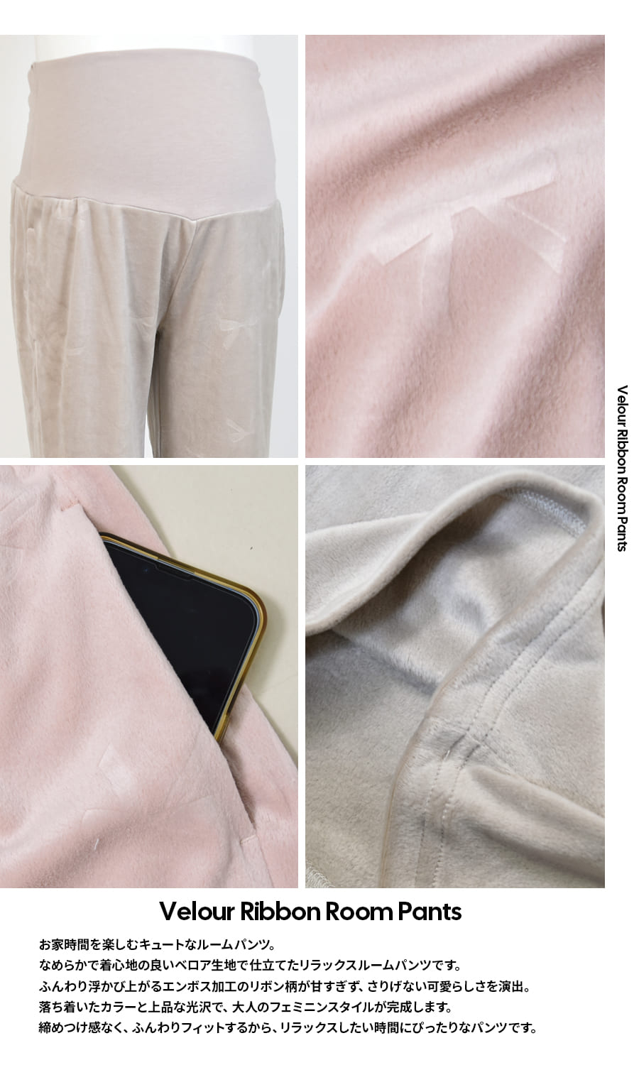 なめらかで着心地の良いベロア生地で仕立てた至福のリラックスルームパンツ。