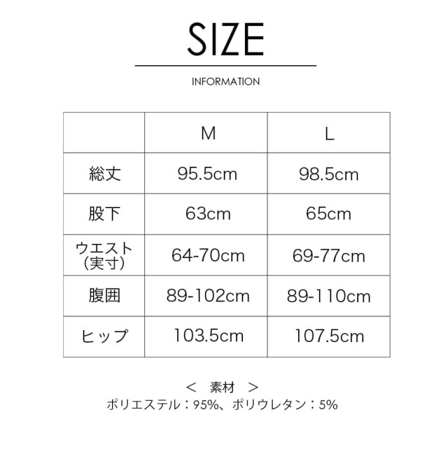 総丈95.5cm/股下63cm/ウエスト64〜70cm/腹囲81〜102cm/ヒップ103.5cm/ワタリ32cm/裾幅26cm