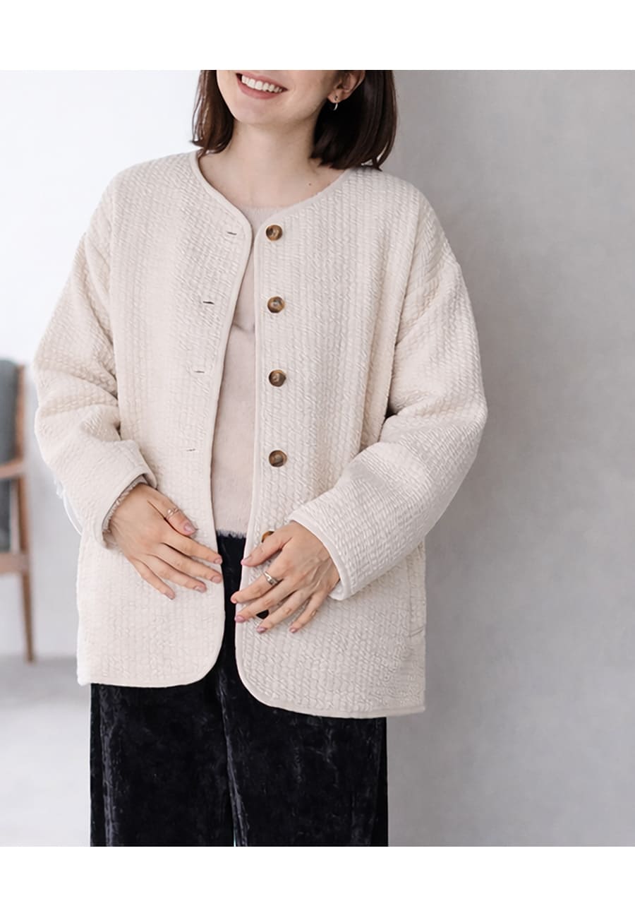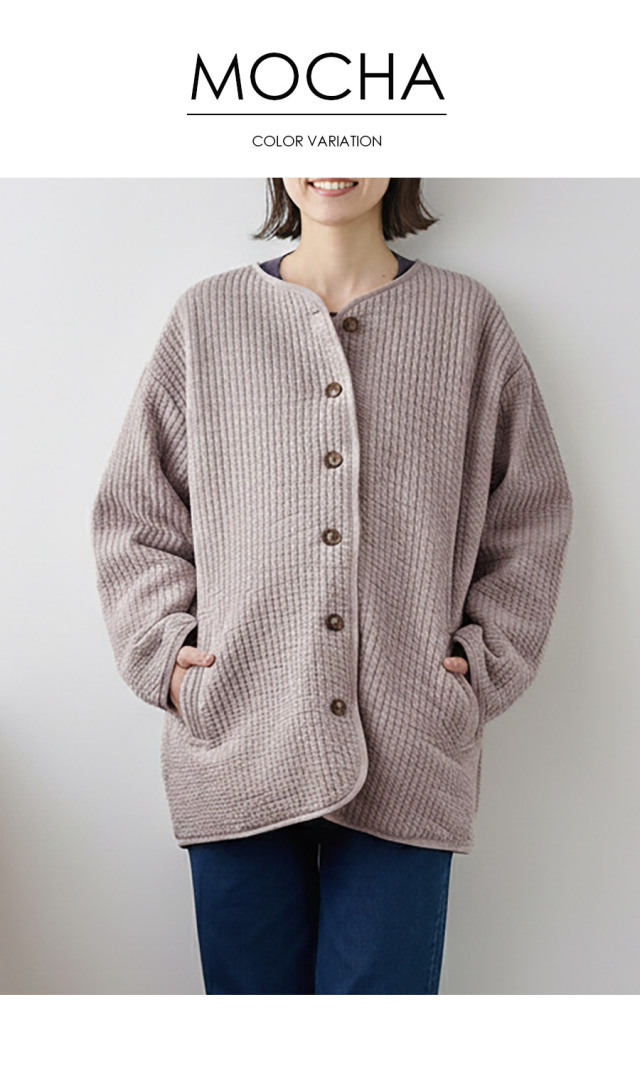寒い季節のお出かけを、あたたかく、やさしく、心地よくしてくれるキルトコートです。
