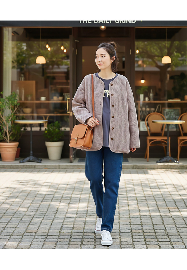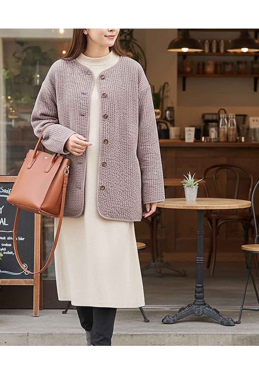 軽やかな着心地ながら、しっかりと暖かさを感じられるので、秋冬のお出かけに心強い一着です。