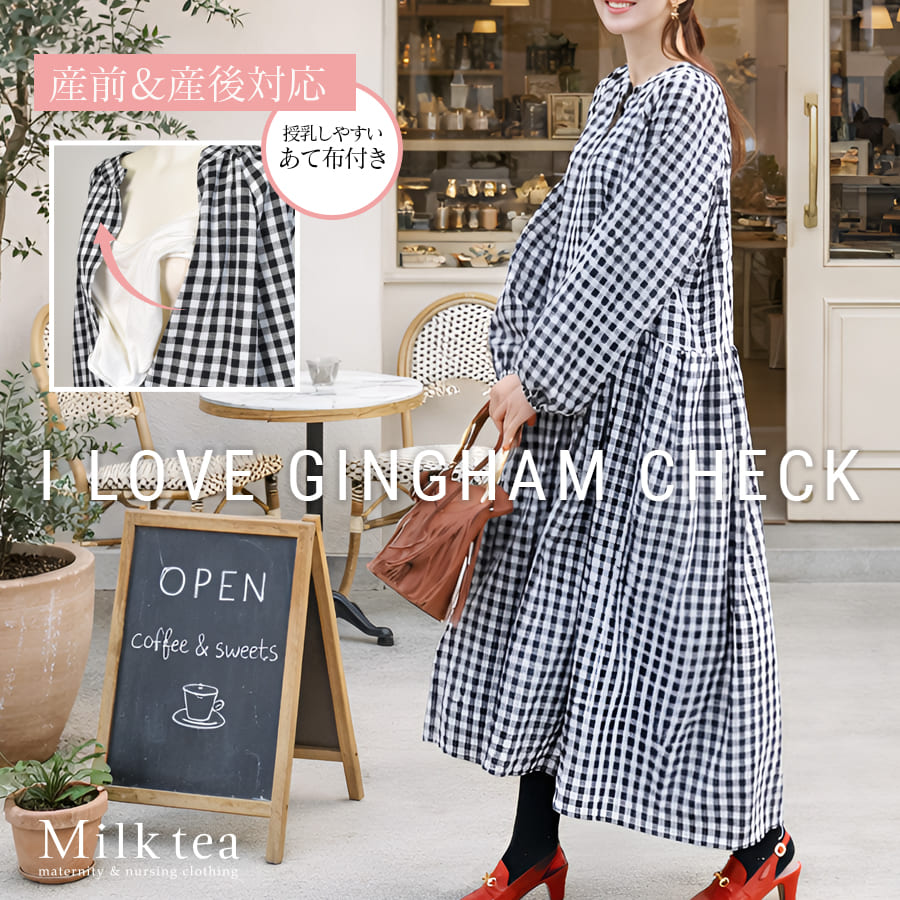 商品カテゴリ:授乳服 授乳 マタニティ マタニティウェア 妊娠 出産 妊婦 妊婦服 産前産後 出産準備 入院準備 産院 妊娠初期 妊娠中期 妊娠後期 レディース ワンピース ロングワンピース ティアードワンピース ギンガムチェック シャツワンピース 保護者会 オフィス 妊婦服 春 秋 冬 大人可愛い Milktea ミルクティー ミルクティ マタニティ服と授乳服の通販なら【公式】Milk teaオンラインショップ