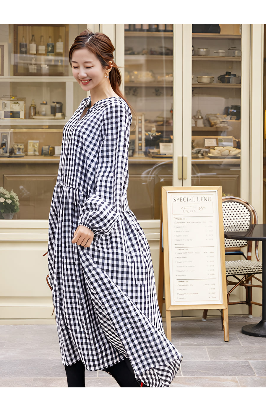 「大胆なギンガムチェックとボリュームスリーブが印象的」