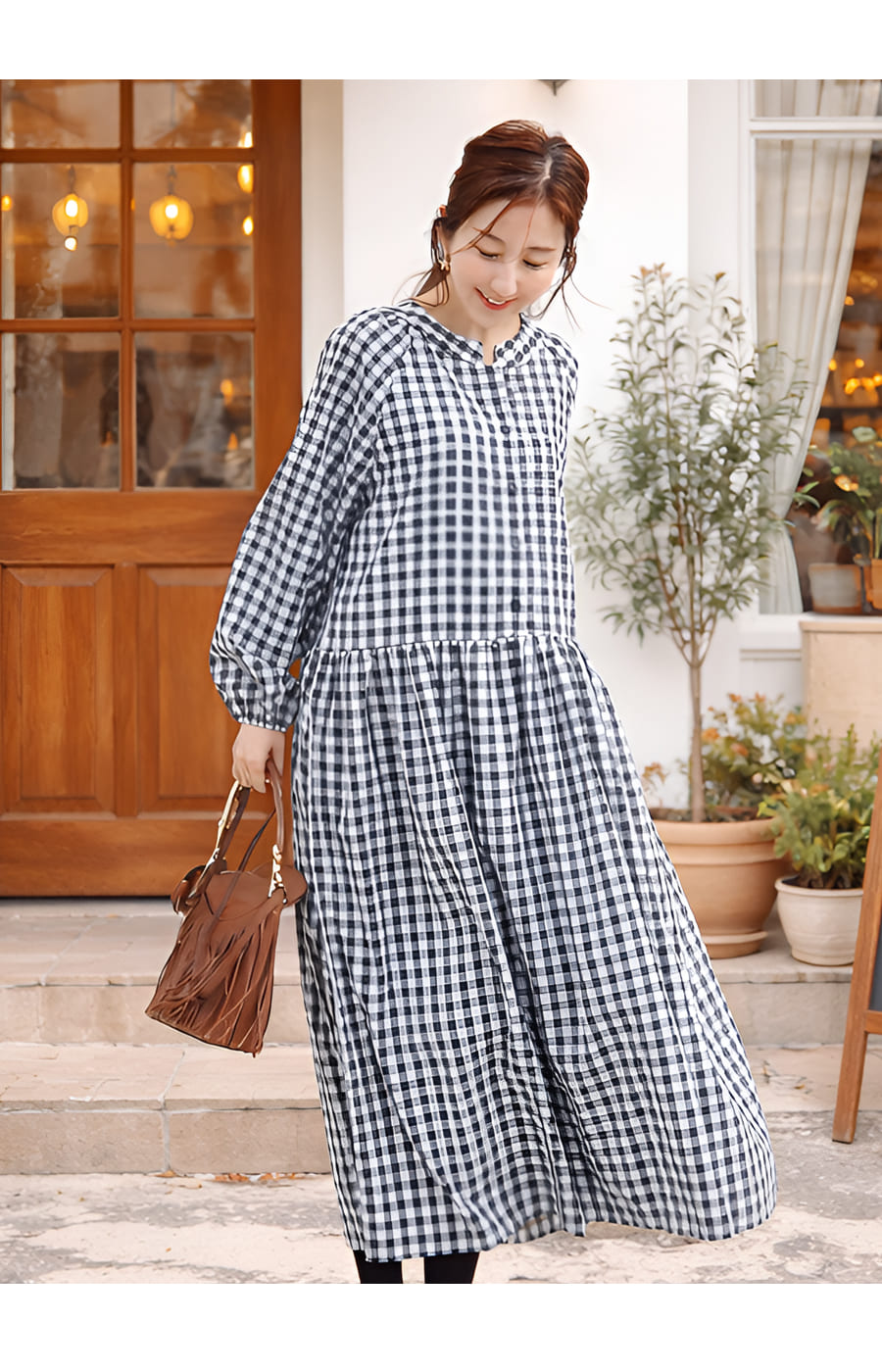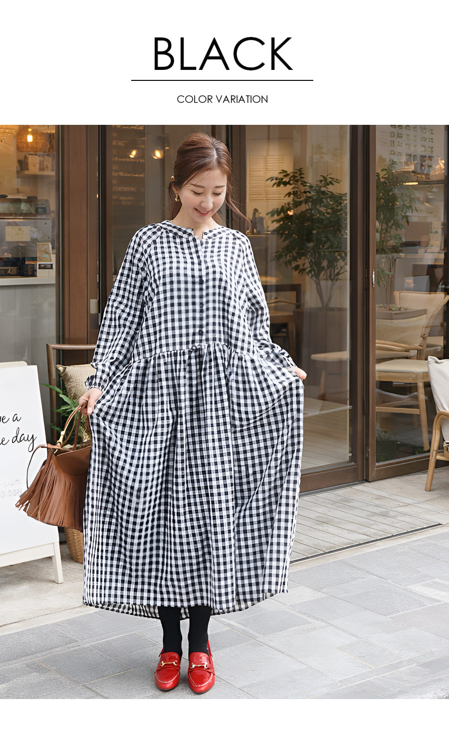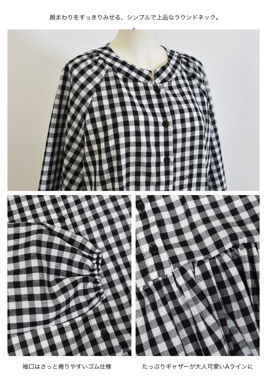 ほどよいハリ感と柔らかな肌ざわりが魅力の、ジェニー・ギンガムギャザーワンピース。