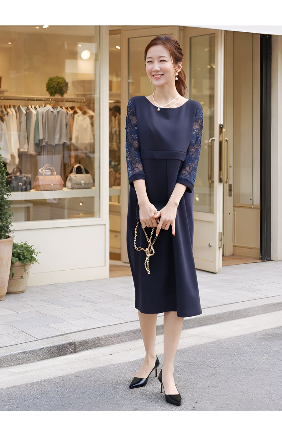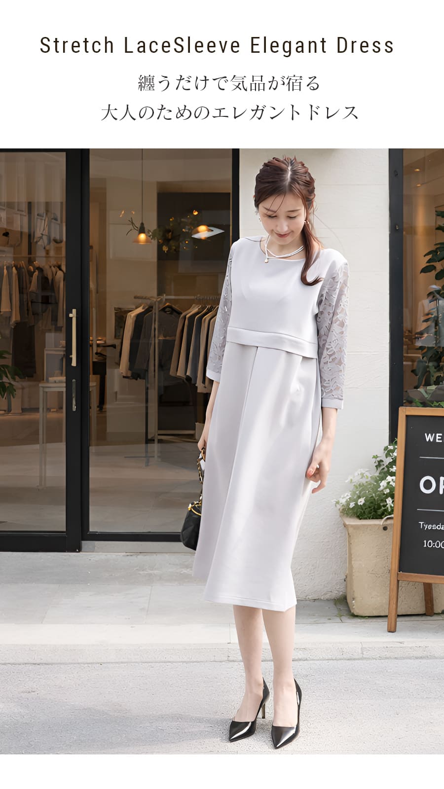 「纏うだけで気品が宿る、ストレッチレースの優雅ワンピース」