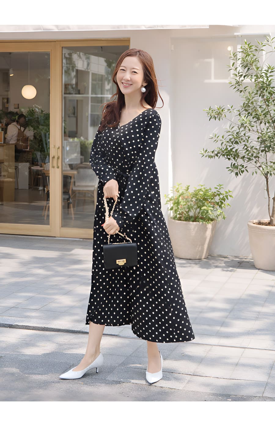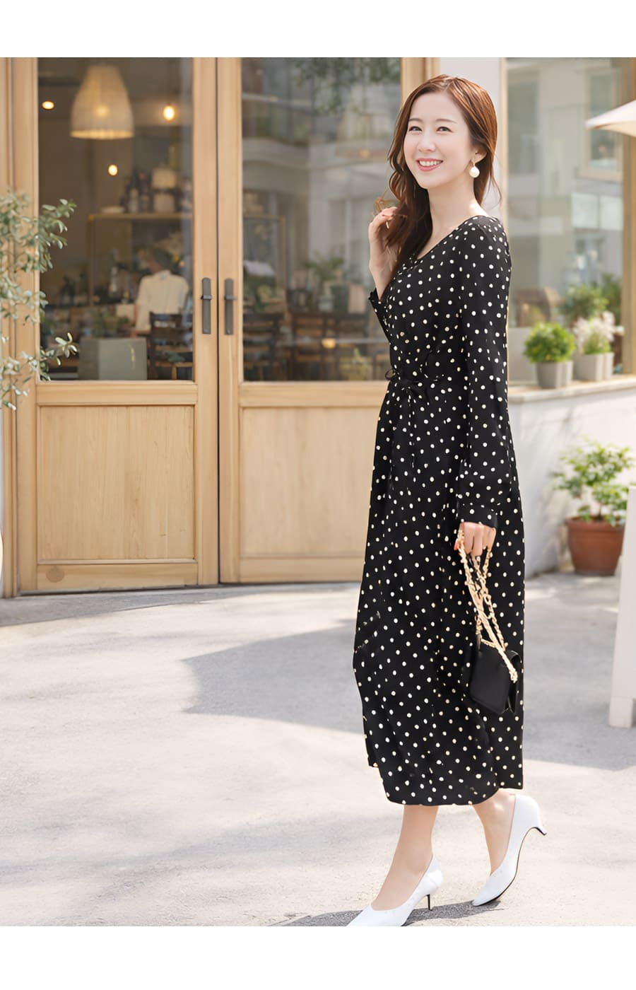 「クラシカルなドット柄は甘すぎず、大人の女性にぴったりの上品な可愛さ」