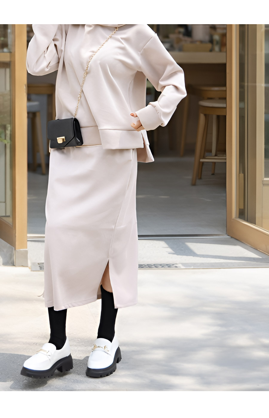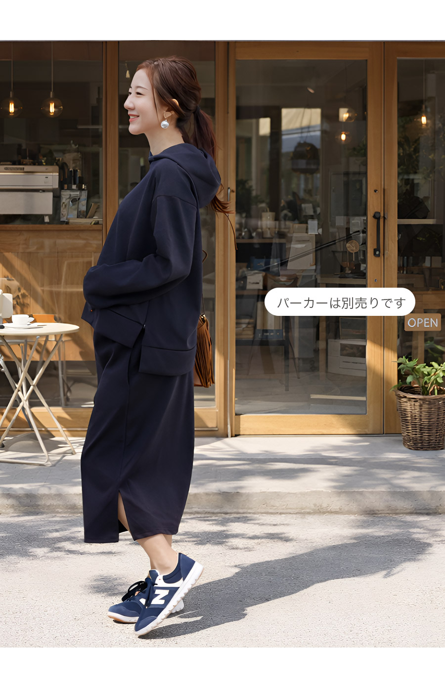 きれいめにもカジュアルにも着回せる、ママにうれしい万能スカートです。