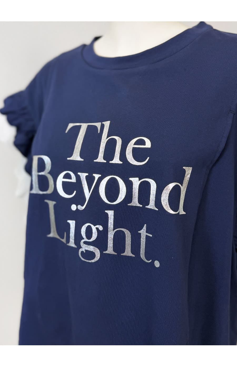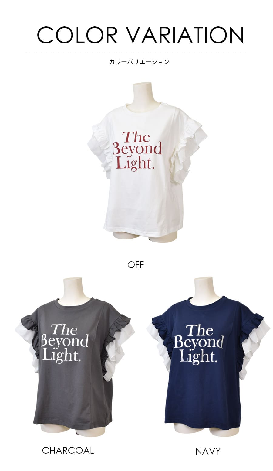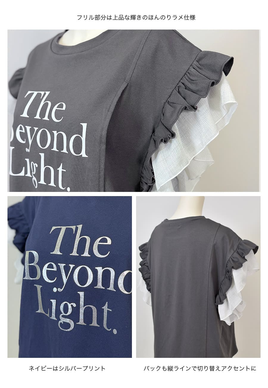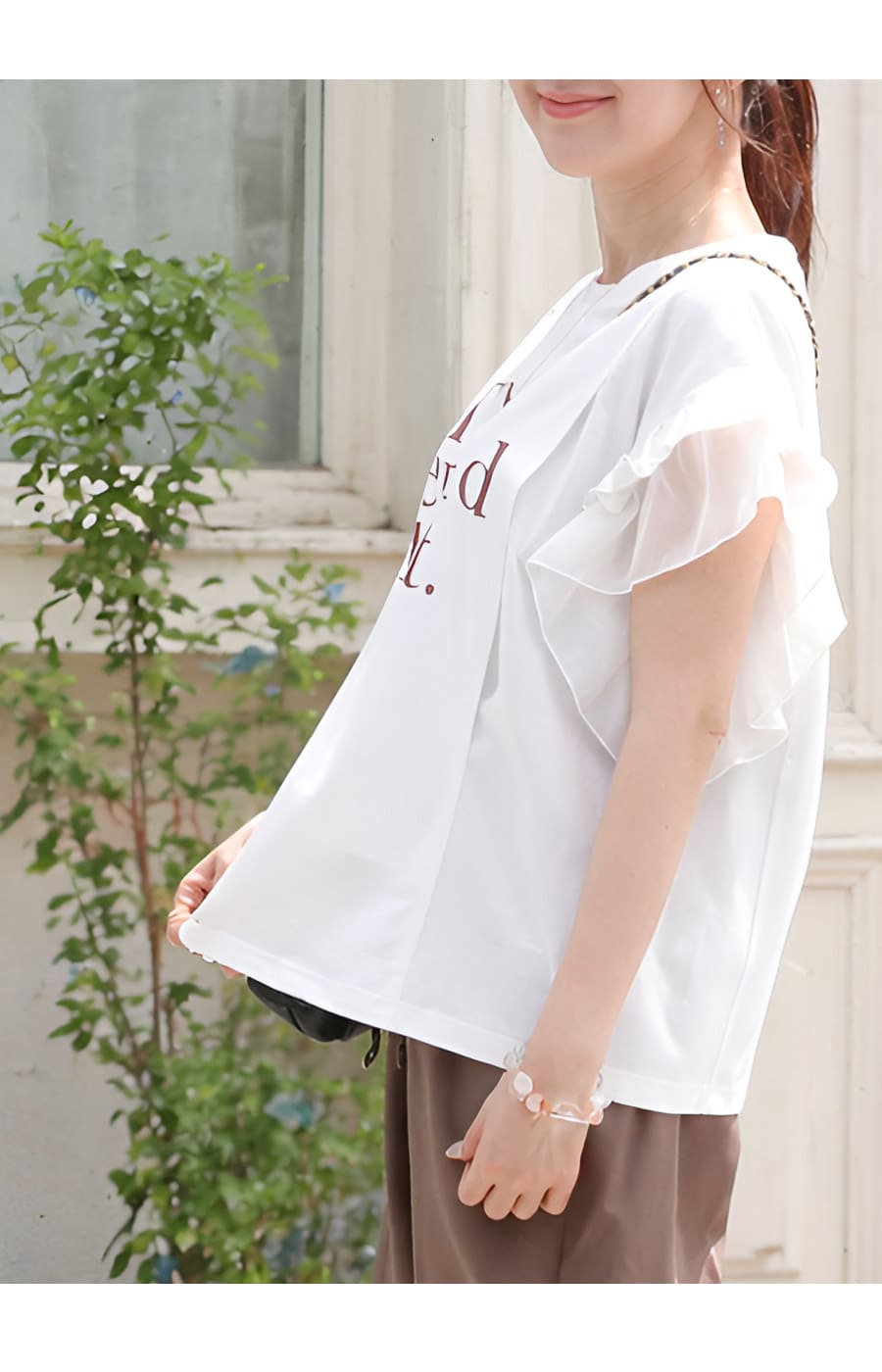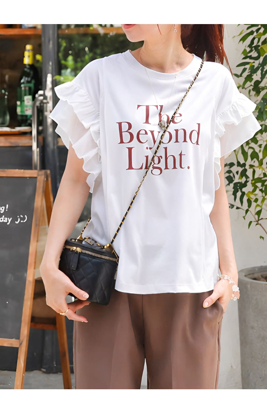 ふんわりと揺れる袖フリルが印象的な、大人可愛いロゴプリントTシャツ。