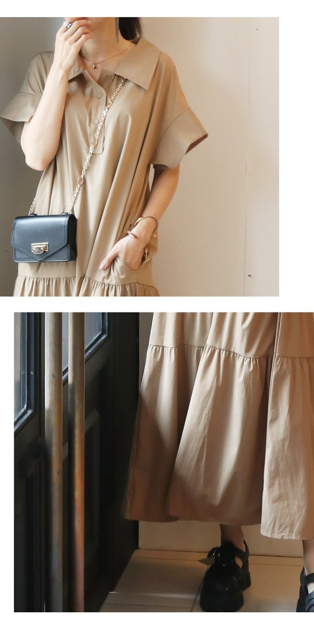 ゆるっとした抜け感のあるこなれシルエットが可愛い<授乳・マタニティ対応>シャツ&裾ティアードロングワンピース。