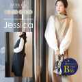 袖部分をシャツ仕様にしたドッキングデザインは上品で優しい印象に。