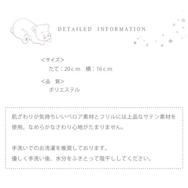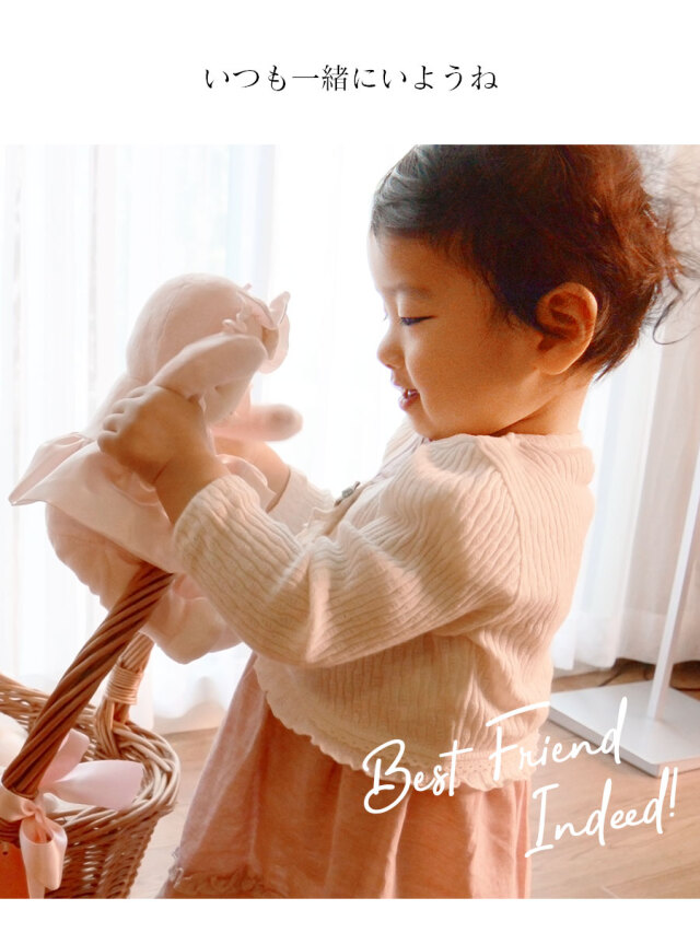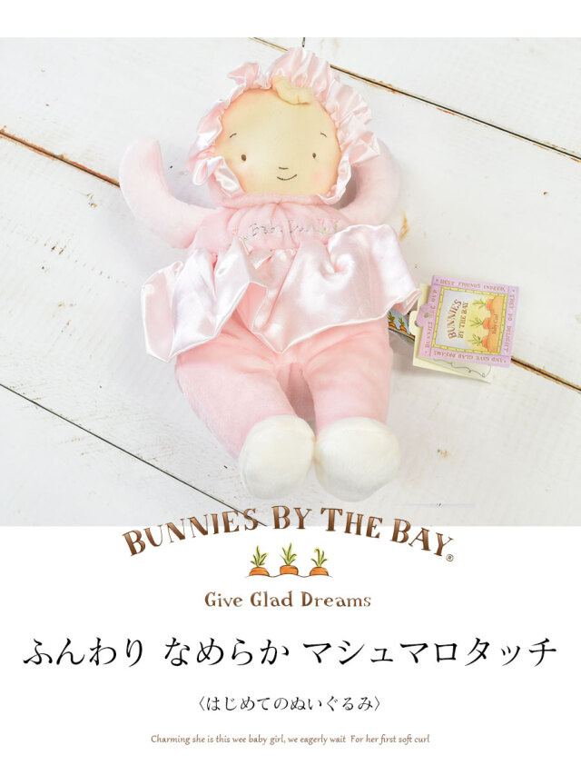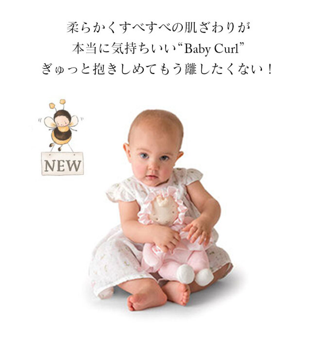 大人気「バニーズバイザベイ」シリーズ Baby Curl 大きいサイズのぬいぐるみ。 まるでマシュマロのようなやわらかさで本当に気持ちいい! ワンピースを着た赤ちゃんのぬいぐるみはぎゅっと抱きしめたくなる可愛らしさです。 肌ざわりが気持ちいいベロア素材とフリルには上品なサテン素材を使用。 お子様への初めてのおもちゃとしてもオススメです。 寝かしつけアイテム、ギフトにどうぞ。