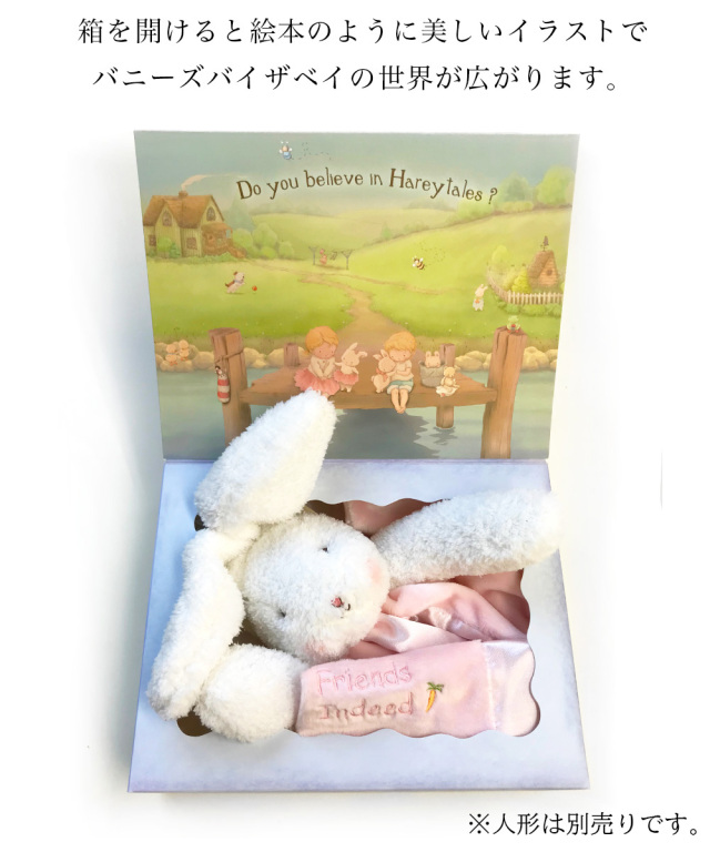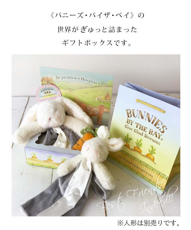 子供に大人気のアメリカ発ブランド「バニーズバイザベイ」。そんなキュートなぬいぐるみをラッピングできる専用のボックスです。手提げも一緒についてくるので、特別なプレゼントにとっても喜ばれます。