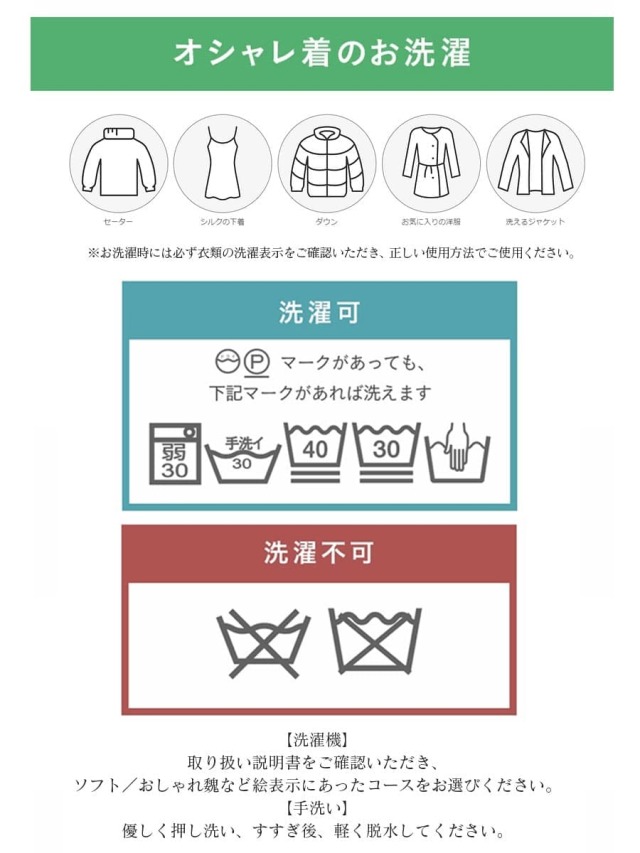 水温は30°以下で洗ってください。洗濯後はすぐに取り出してください。