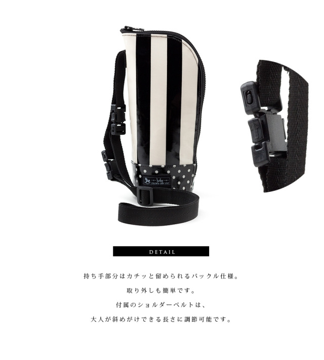 付け外しができるバックル仕様なので、ベビーカーや