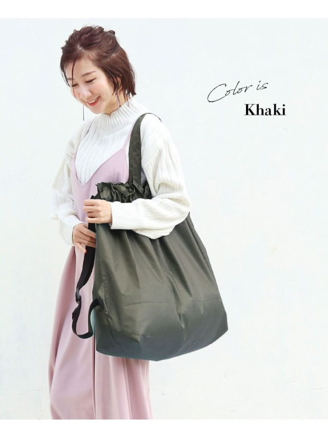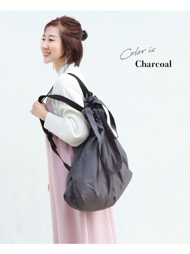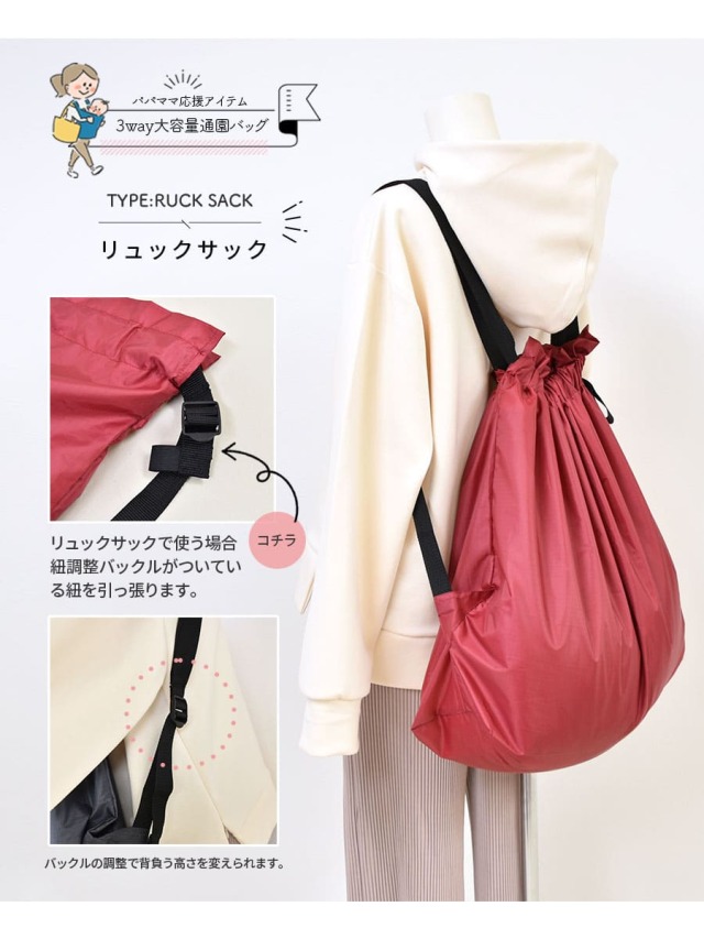 ※リュックになる部分のヒモは使用しない場合、ゴムで留めてください。