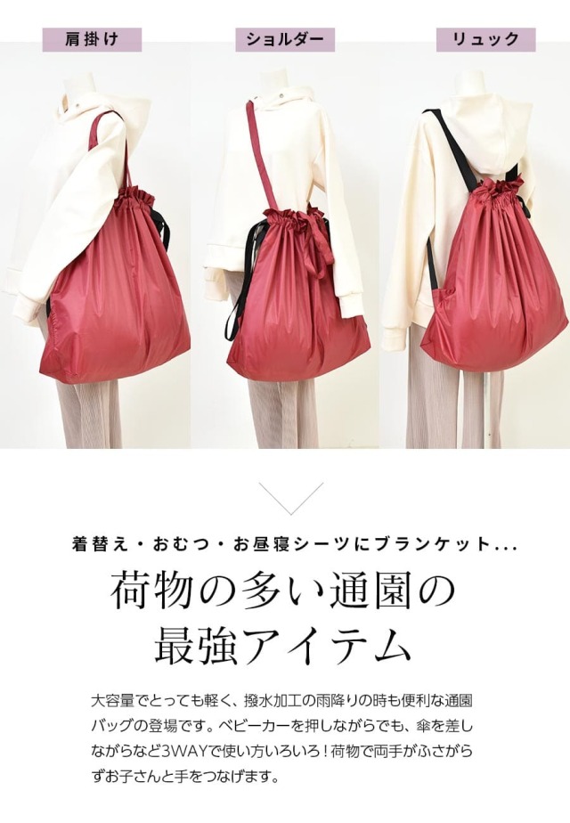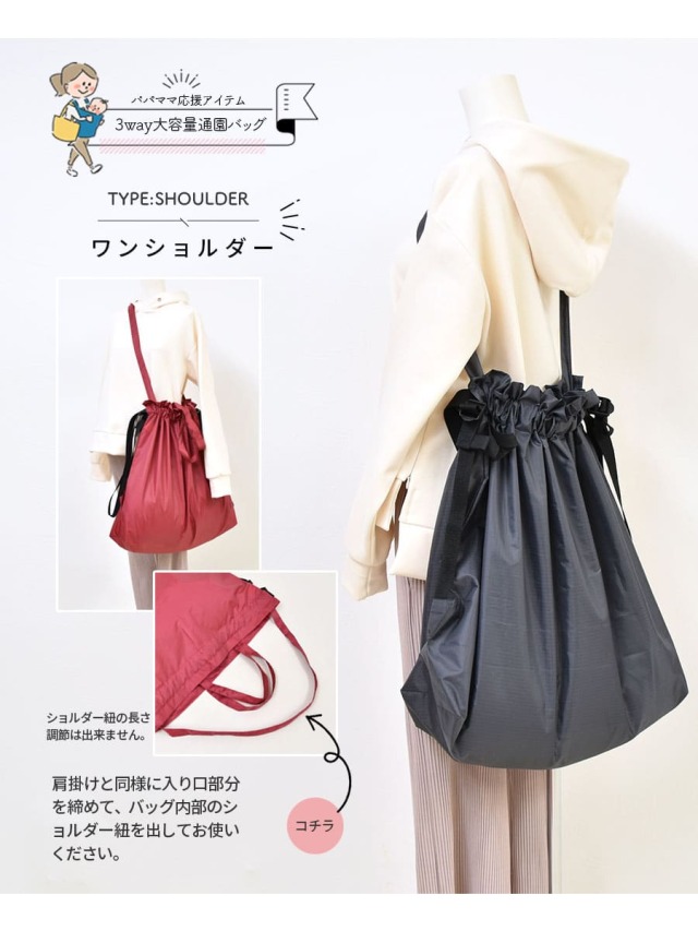 ●3WAYで肩掛け・リュック ・ワンショルでお使いいただけます。