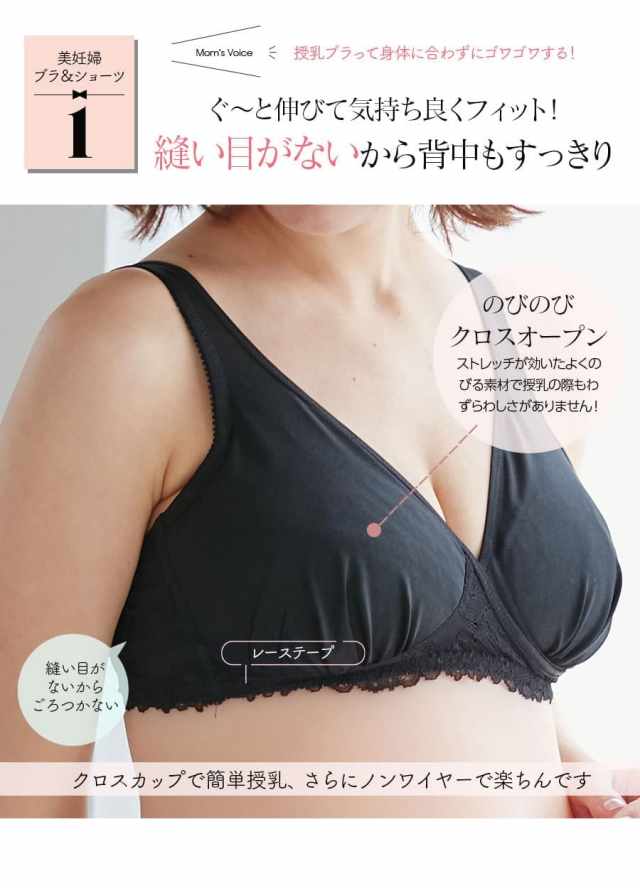 良く伸びる生地が胸上まで覆って妊娠中大きくなる胸をしっかり包み込み形をキープ。ノンワイヤー&ストレッチレースで変化の大きい産前産後のママがどの時期に使っても優しくフィット。