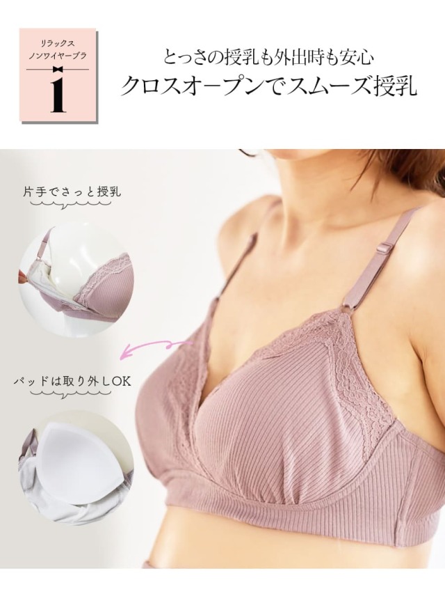 ナチュラル素材で肌に優しい!授乳もラクラクのリラックスノンワイヤーブラ。