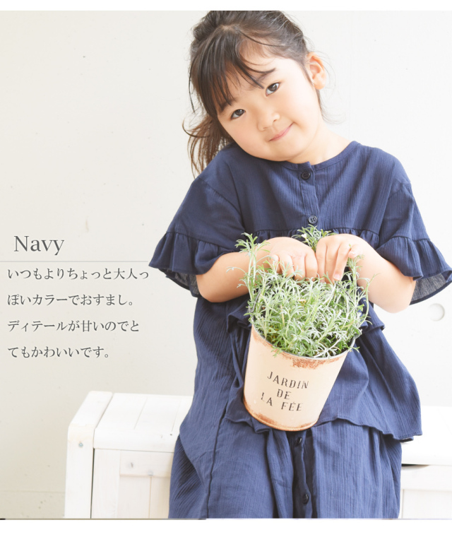 ※モデル身長は114cm、白は11サイズ着用、ネイビーは9サイズ着用です。