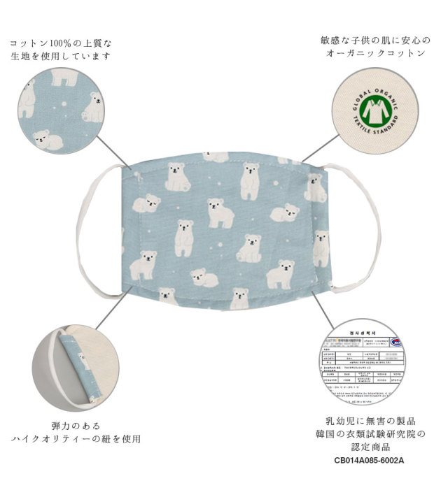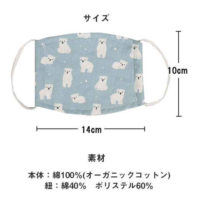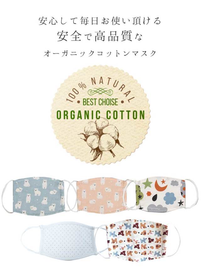 マスクを嫌がるお子様も、可愛らしい柄のマスクで毎日使いたくなる、安心のオーガニックコットンのマスク。