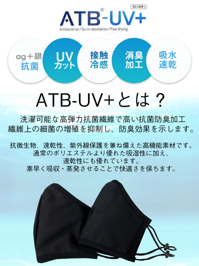 洗って何度も使えるので環境にやさしいマスクです。男女兼用のレギュラーサイズ3D立体裁断!顔にフィットする立体裁断で呼吸がしやすく伸縮性のあるゴムは長時間着けても耳が痛くなりにくいです。さらに調整パーツ付きなので自分のサイズで着用できます。特徴は抗菌・吸汗速乾・UVカット生地「KOLON ATB UV+」を使ってます。銀成分による99.9%抗菌機能があるだけでなく、吸汗速乾機能付きで快適な着け心地です。また、UVカット機能があるのでこれからの季節嬉しい一枚です。