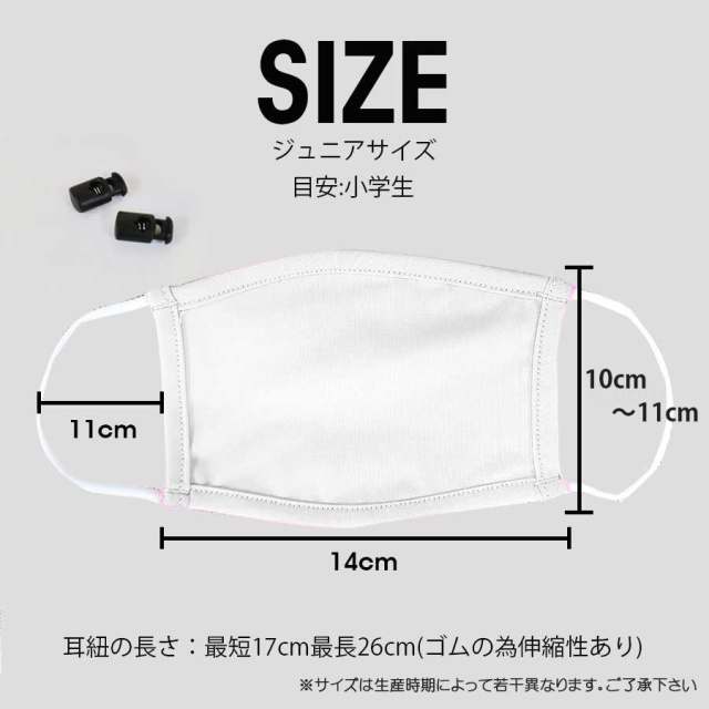 | 製品名: | 接触冷感!熱がこもらない・洗える素材UVカットATB-UV+を使用 ジュニアサイズマスク 紐調整機能パーツ付き 10枚までメール便可 |