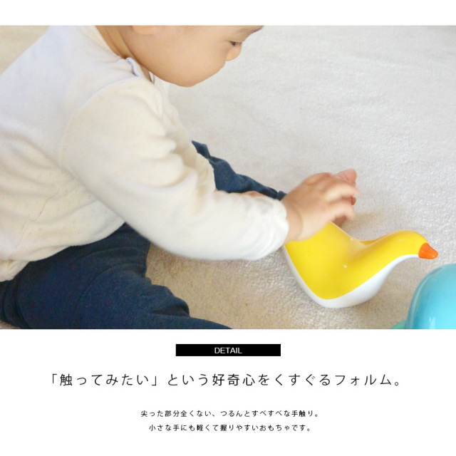 いつまでも触っていたくなるすべすべの手触りと愛らしい表情、色鮮やかなカラーで、インテリアとして飾ってもおしゃれなおもちゃです。
