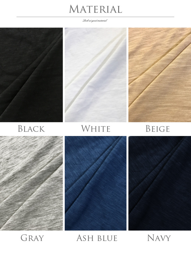 滑らかな手触りのスラブ素材(ポリエステル65%・コットン35%)は