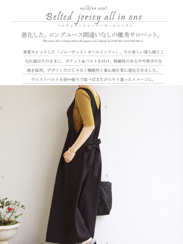 TOPMilk tea Next ワンピース <Milk tea next>ベルテッド・ジャージーオールインワン ベルト取り外し可 当店通常価格: ¥6,590(税込) 価格: ¥6,590 (税込) [ポイント還元 197ポイント〜] 販売期間: メーカー: 株式会社ミルクティー 型番: n099 カラー / サイズ フリー モカ ◎在庫あり ブラック ◎在庫あり 数量: 枚 カラーサイズ在庫モカフリー◎在庫ありブラックフリー◎在庫あり 返品交換について おしゃれだけじゃなく、機能性、着心地の良さも追及した、オールインワン 商品説明 おしゃれだけじゃなく、機能性、着心地の良さも追及した大人のオールインワン 商品仕様 製品名: <Milk tea next>ベルテッド・ジャージーオールインワン 型番: n099 メーカー: 株式会社ミルクティー ※モデル身長は158cm、体重46Kgです。 <サイズ> バスト 99cm、 ウエスト 105cm 丈 124cm ◆伸縮性あり ◆ポケット付き シワになりにくいさらりとした素材です。 ネットに入れてソフト洗い、漬け置き・乾燥機不可 2,490円 2,590円
