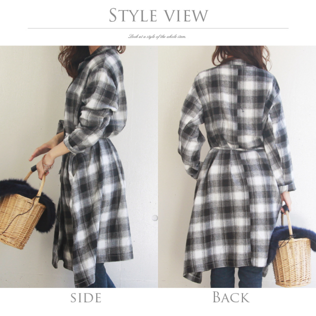 綿100%さらふわフランネルのチェックロングジャケット。シンプルコーデにさっと羽織るだけであったかスタイリッシュに。