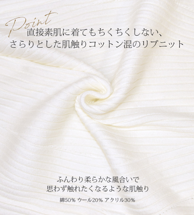 ニットだけどウール混でチクチクせず、素肌に着ても、もっちりと
