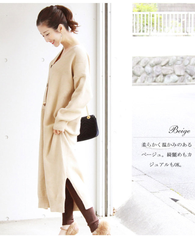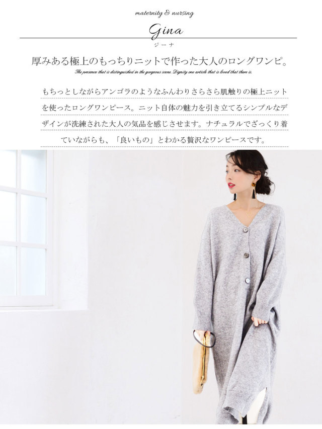 TOPマタニティ・授乳服|新作アイテム Milk tea next <Milk tea next>ジーナ ちくちくしない極上ニット 当店通常価格: ¥7,990(税込) 価格: ¥7,990 (税込) [ポイント還元 239ポイント〜] 販売期間: カラー / サイズ フリー ベージュ × ライトグレー × 数量: 個 カラーサイズ在庫ベージュフリー× ライトグレーフリー× 返品交換について もちっとしながらアンゴラのようなふんわりさらさら肌触りの極上ニットを使ったロングワンピース。ニット自体の魅力を引き立てるシンプルなデザインが洗練された大人の気品を感じさせます。ナチュラルでざっくり着ていながらも、「良いもの」とわかる贅沢なワンピースです。 伸縮性あり <サイズ> バスト112cm、ウエスト114cm、着丈112cm <素材> アクリル40% ポリエステル30% ナイロン20% ウール5% ポリウレタン5% 単独洗い、ネットに入れてソフト洗い、漬け置き・乾燥機不可