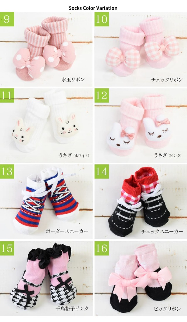 ふわふわのマスコットやフリル、スニーカー柄など見るだけでも可愛いベビーソックス。