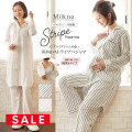 授乳服 マタニティ 妊娠 出産 産前産後 入院準備 出産準備 産院 前開き 掛け違い防止 パジャマ ママパジャマ 寝巻き 上下セット 2点セット ストライプ 綿 長袖 入院準備 妊婦 妊婦服 マタニティー 春 秋 冬 リラックス ルームウエア ママ ミルクティー ミルクティ Milk tea